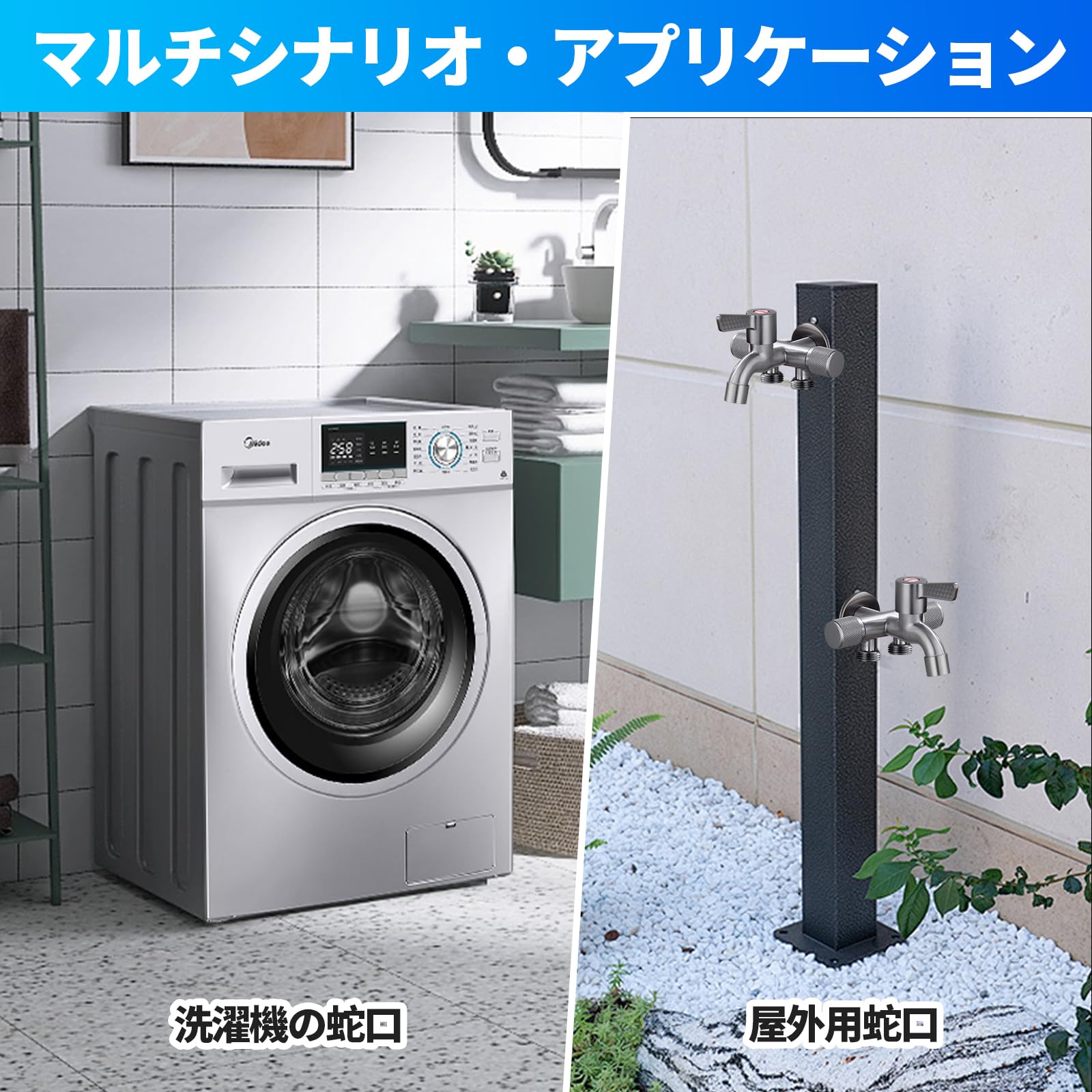 【国際汎用基準G1/2・適用範囲】 国際汎用基準G1/2ユニバーサルインターフェースを採用し、ほとんどのホースと組み合わせることができ、ほとんどの洗濯機に適しています。