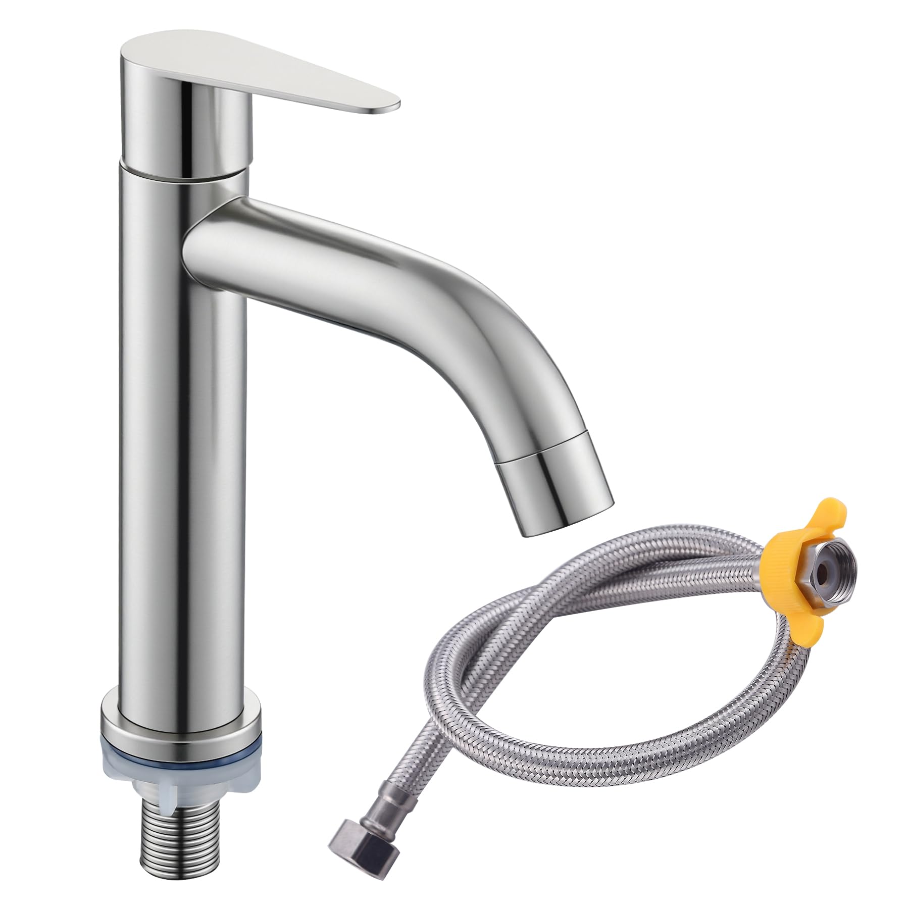 【特価】洗面台 蛇口 単水栓 シングルレバー 立水栓 トイレ 手洗い 蛇口 1穴 手洗いボウル 水道 洗面所 水栓 節水 SUS304ステンレス製 60cmホース付き 高さ17cm | GIGATERA