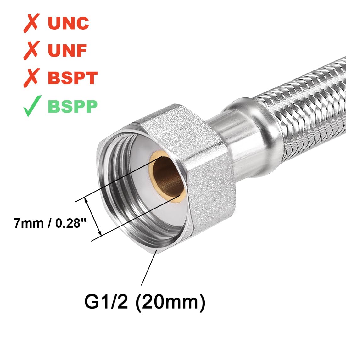 【数量限】uxcell 蛇口供給コネクター 304ステンレス鋼製 シルバートーン ヒーター供給ホース拡張 フレキシブルパイプ供給ライン トイレの組み合わせ G127mmメス x G127mm オス 200mm長さ | GIGATERA