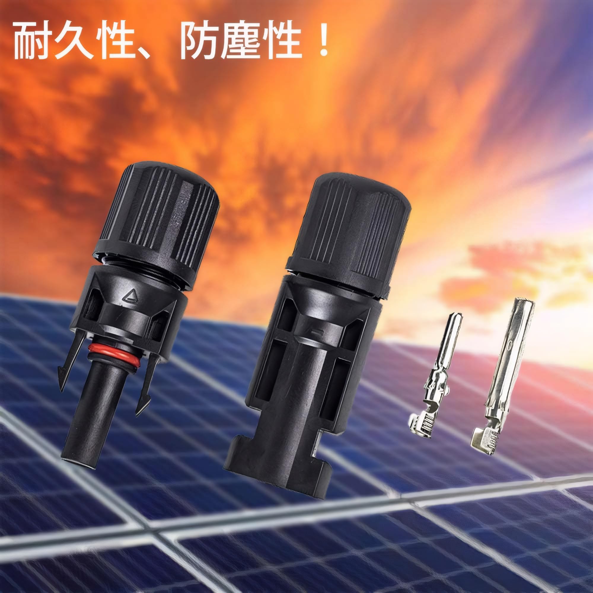 MC4コネクター ソーラー パネル対応 接続ケーブル用 、オス・メス各100個、取り付けレンチ付、耐熱・防水・防塵