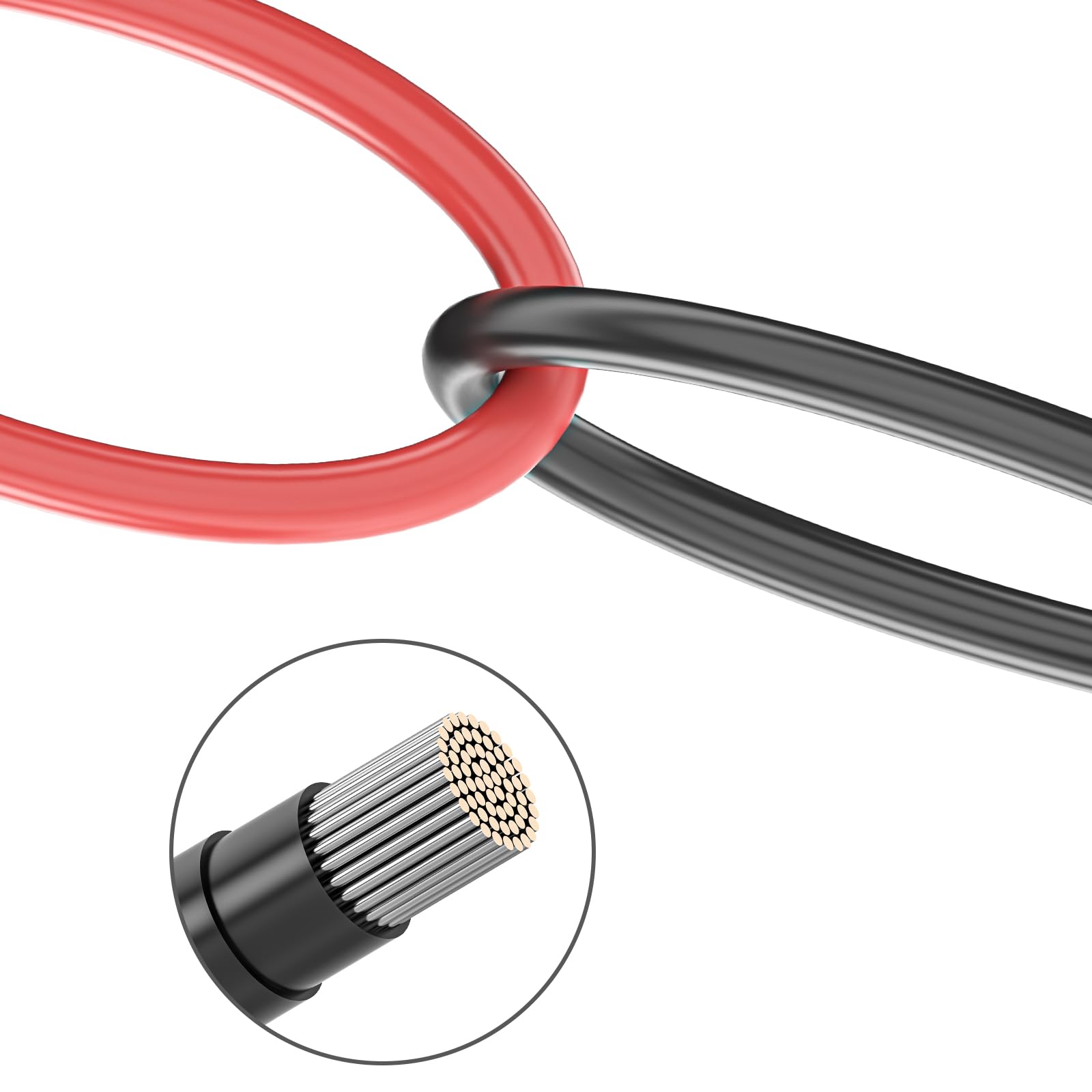 規格:12AWG/サイズ:4mm2/長さ:3m*2本(赤+黒)/IP67防水/、定格電圧:1000V/コネクタのコア:錫メッキ真鍮/国際TUV認証取得/端子タイプ:ソーラーコネクター(両端加工式)