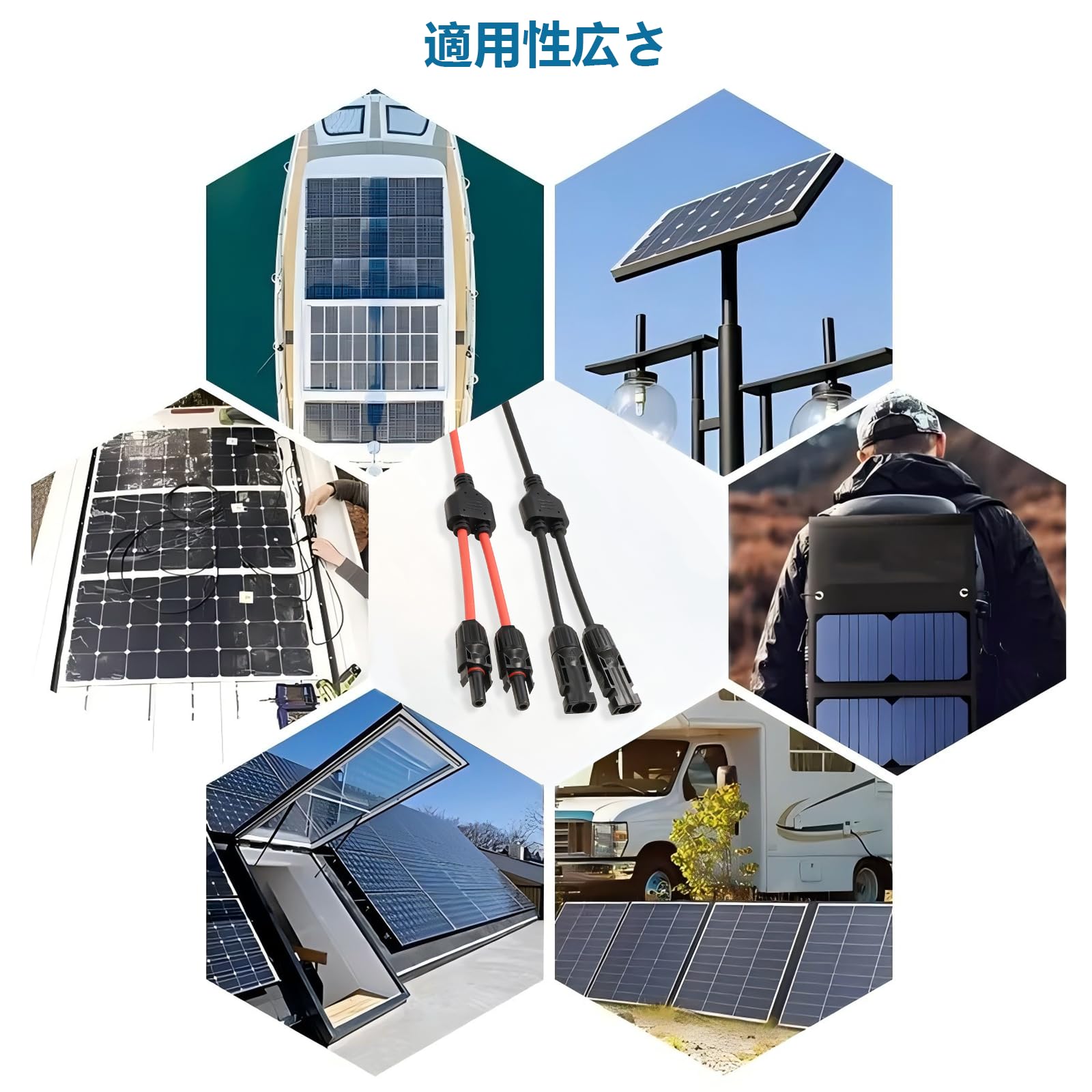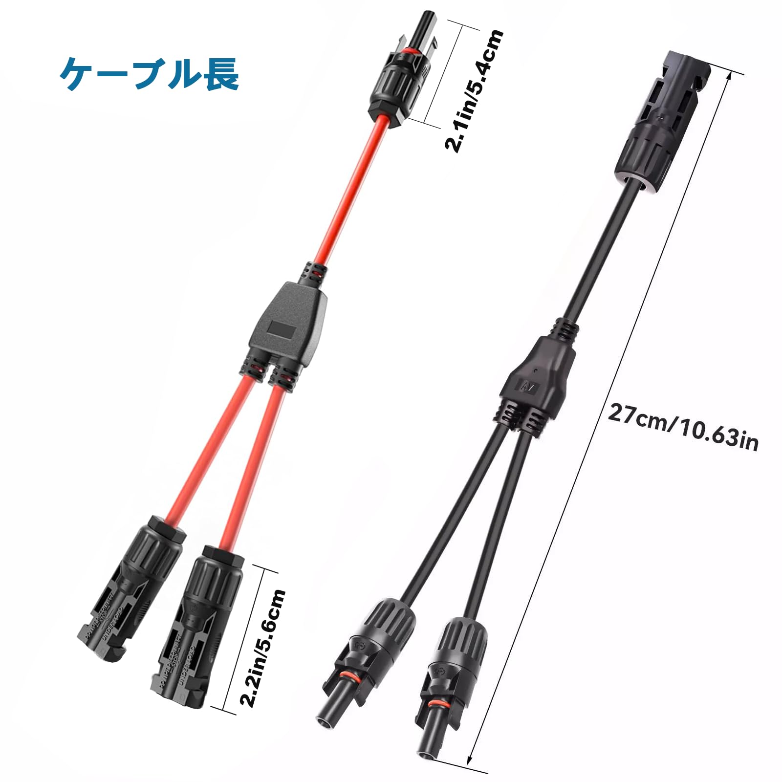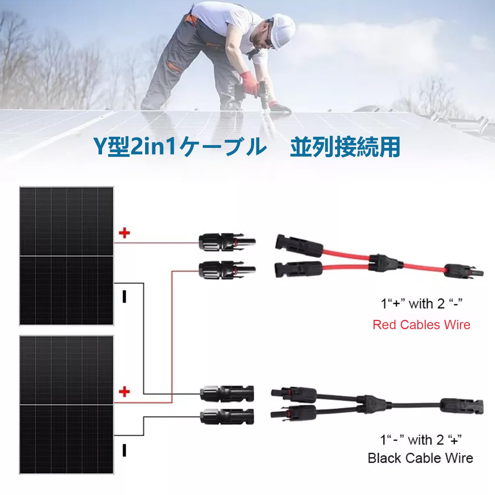 太陽光発電接続用:1メスから2オス(M/FF)と1オスから2メス(F/MM)の接続が可能です。このコネクターは2つのソーラーパネルを並列接続することができます、すべてのソーラーコネクタと互換性があり。