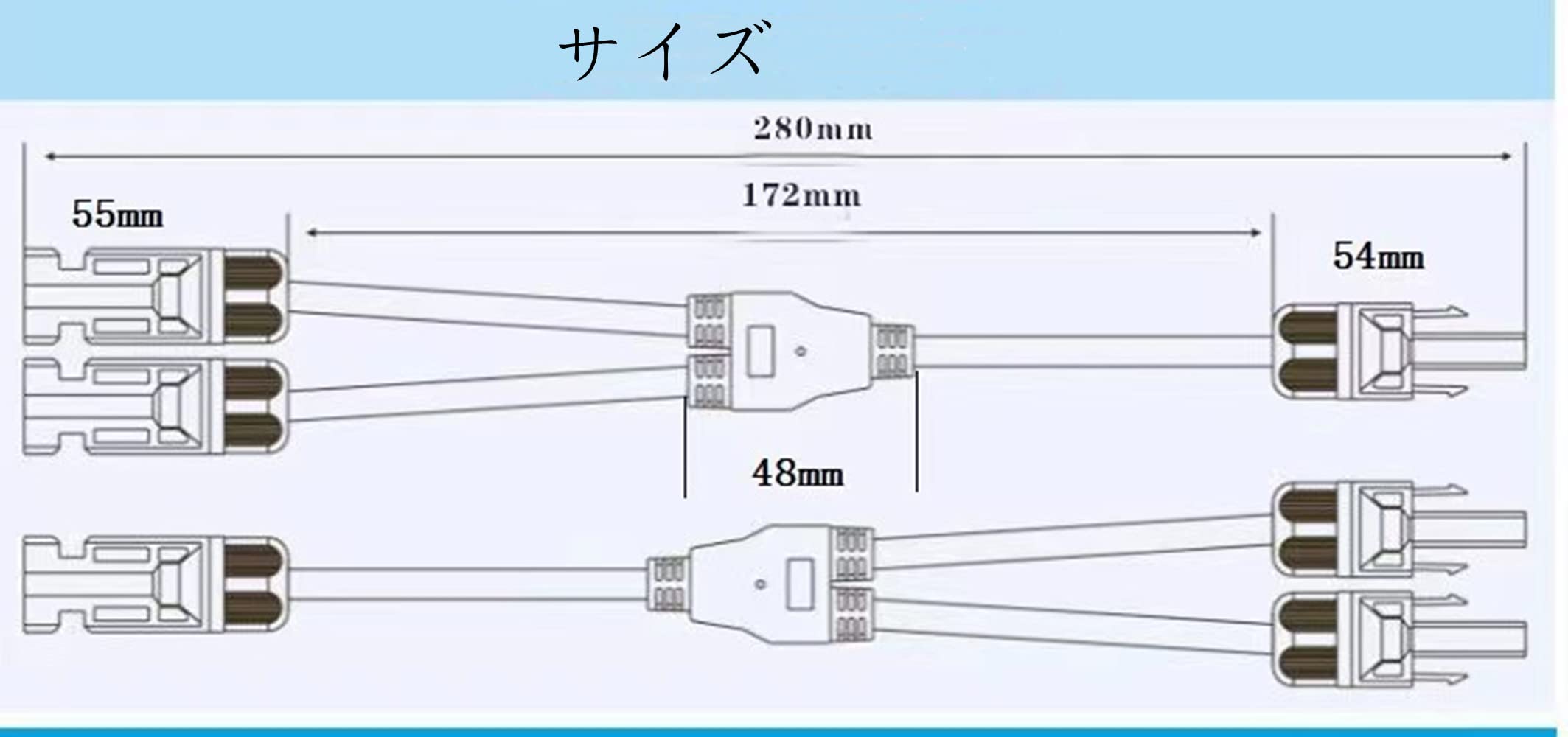 ソーラーパネルY並列接続(1プラグから2ソケットおよび1ソケットから2プラグ)