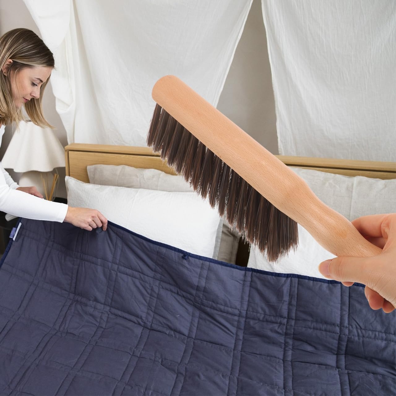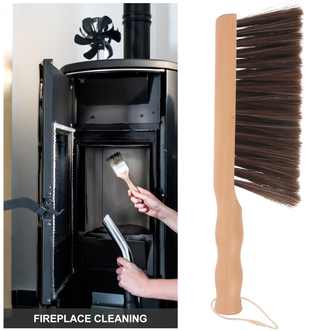 柔らかい熟成ブラシ毛:暖炉の表面や家具、カウンターなどを傷つけにくい柔らかいブラシ毛を使用し、優しく汚れを落としながら素材の保護にも配慮しています。
