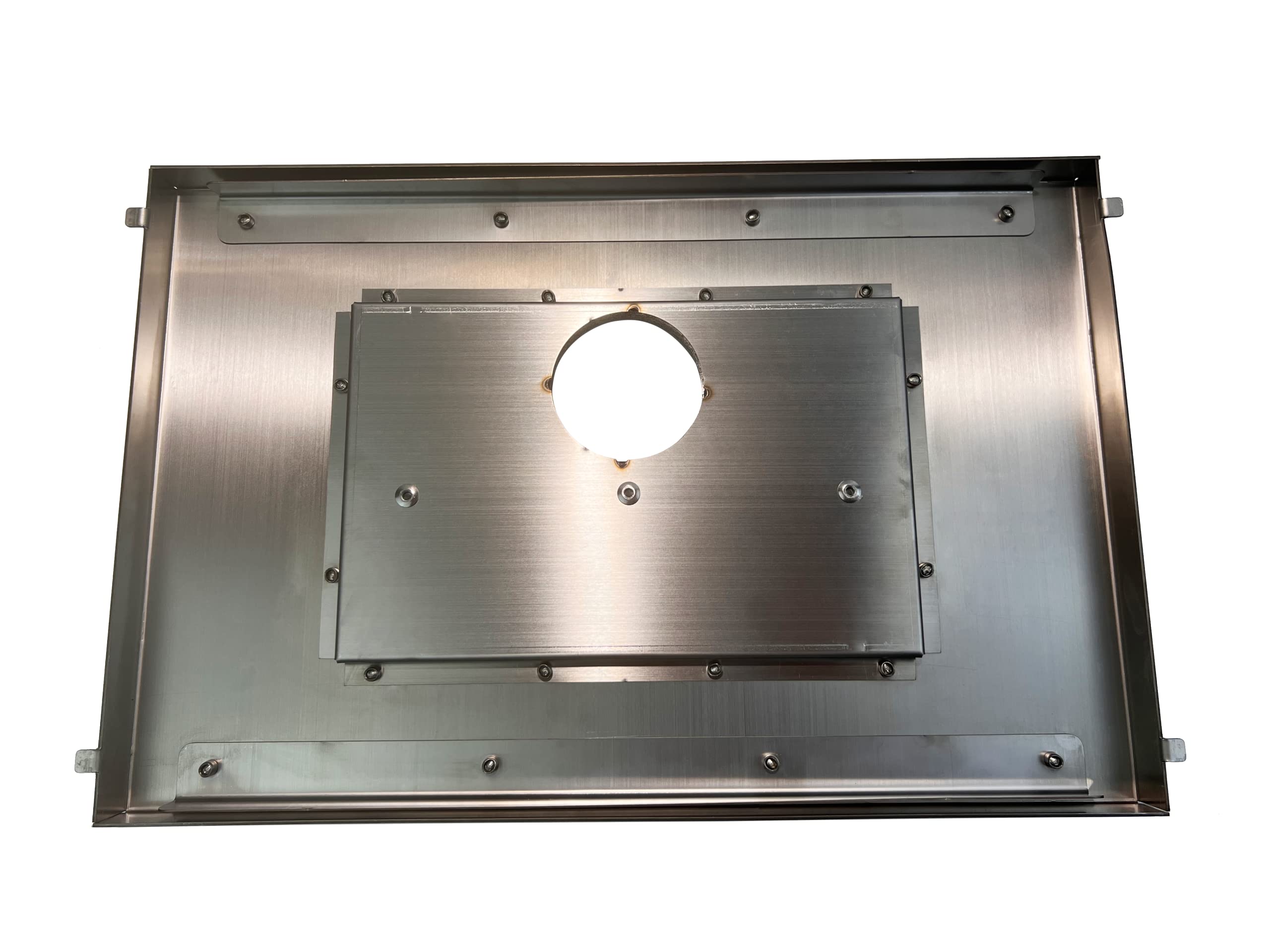 背面板は二次燃焼2層構造です。二次燃焼2層構造、燃焼効率高くします。煙突に煤の付着が軽減し、火の粉も少ないのでテントにダメージ軽減します。
