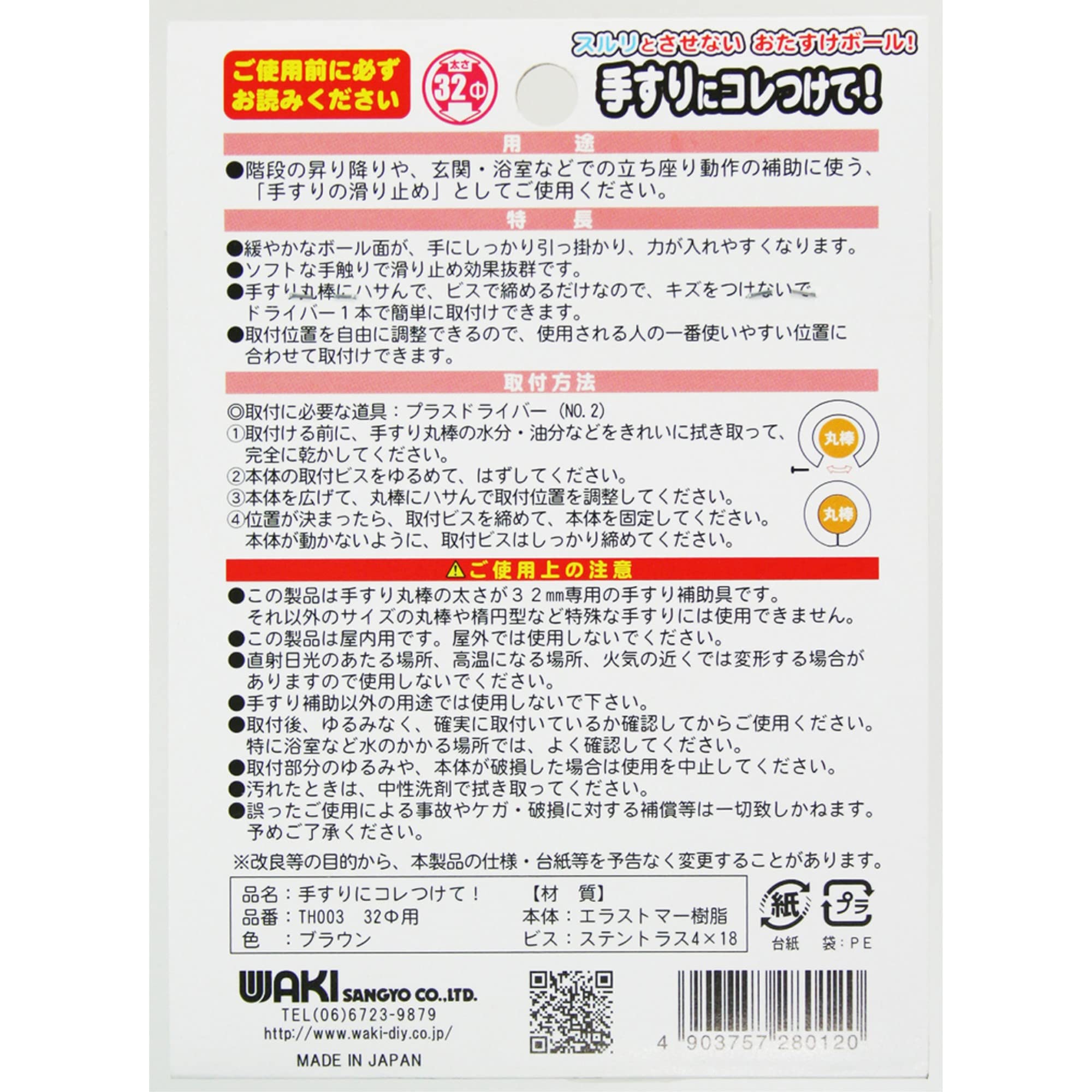 【数量限】和気産業(Waki Sangyo) WAKI 手すりにコレつけて! TH003 32 ブラウン