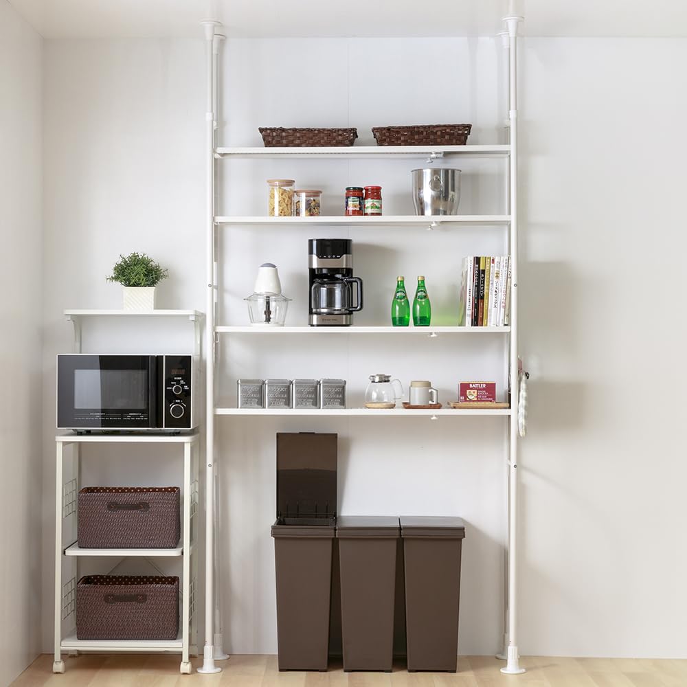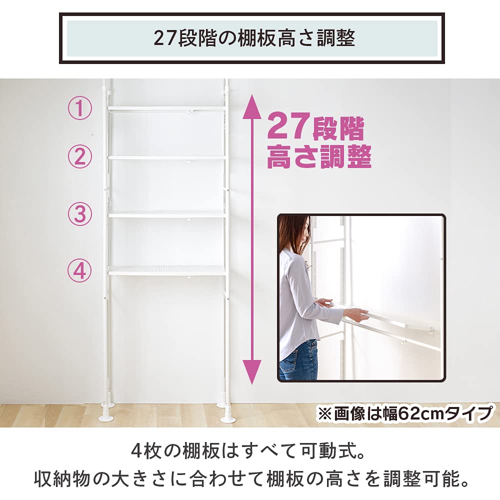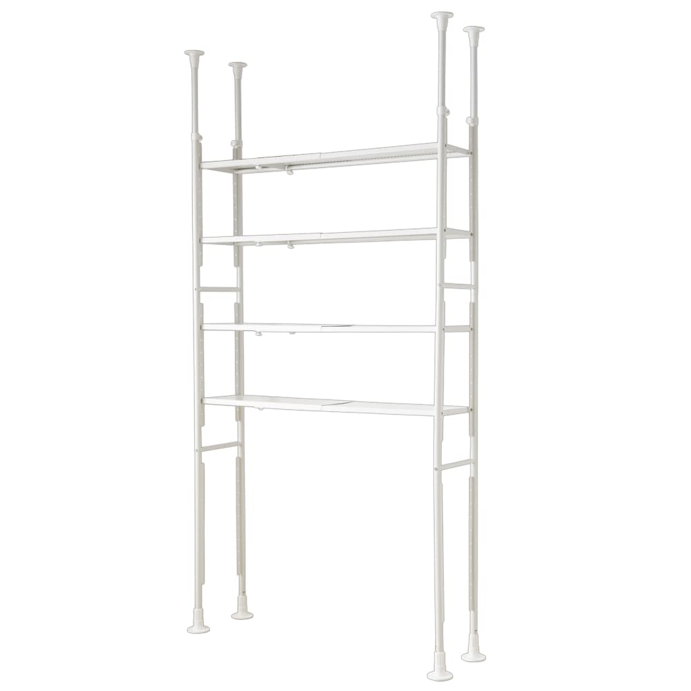 【在庫処分】【洗濯機上の棚にも】アイリスプラザ 棚 ラック 伸縮 突っ張り フック×16個付き 可動棚×4 幅92~146㎝ 天井210~260㎝対応 T耐荷重各10kg SSH-9235 ホワイト | GIGATERA