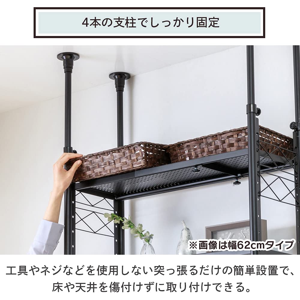 材質:棚板・支柱・ネット:スチール:フック・脚部アジャスター:ABS樹脂:天井突っ張りパーツ:EVA樹脂