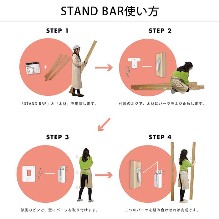 STAND BAR Slim は30×40mm材や2×2材などの一般的な木材を使って細い柱でスタイリッシュな収納がDIY出来ます。