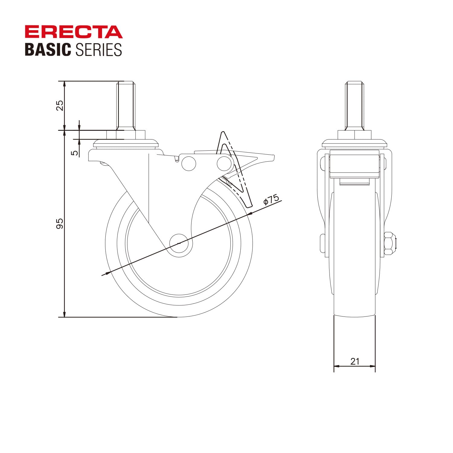 エレクター ベーシックシリーズ エラストマーキャスター ストッパー付75mm (2個入) BDRS75 ホームエレクター後継品