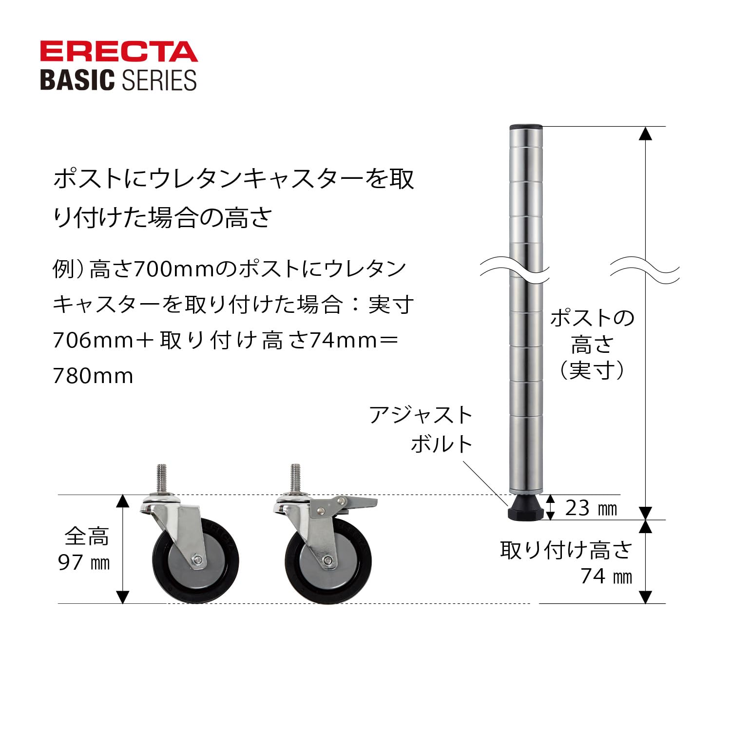 ●組合せ自在のワイヤーラック「ベーシックエレクター」用のキャスター(ストッパー付き)