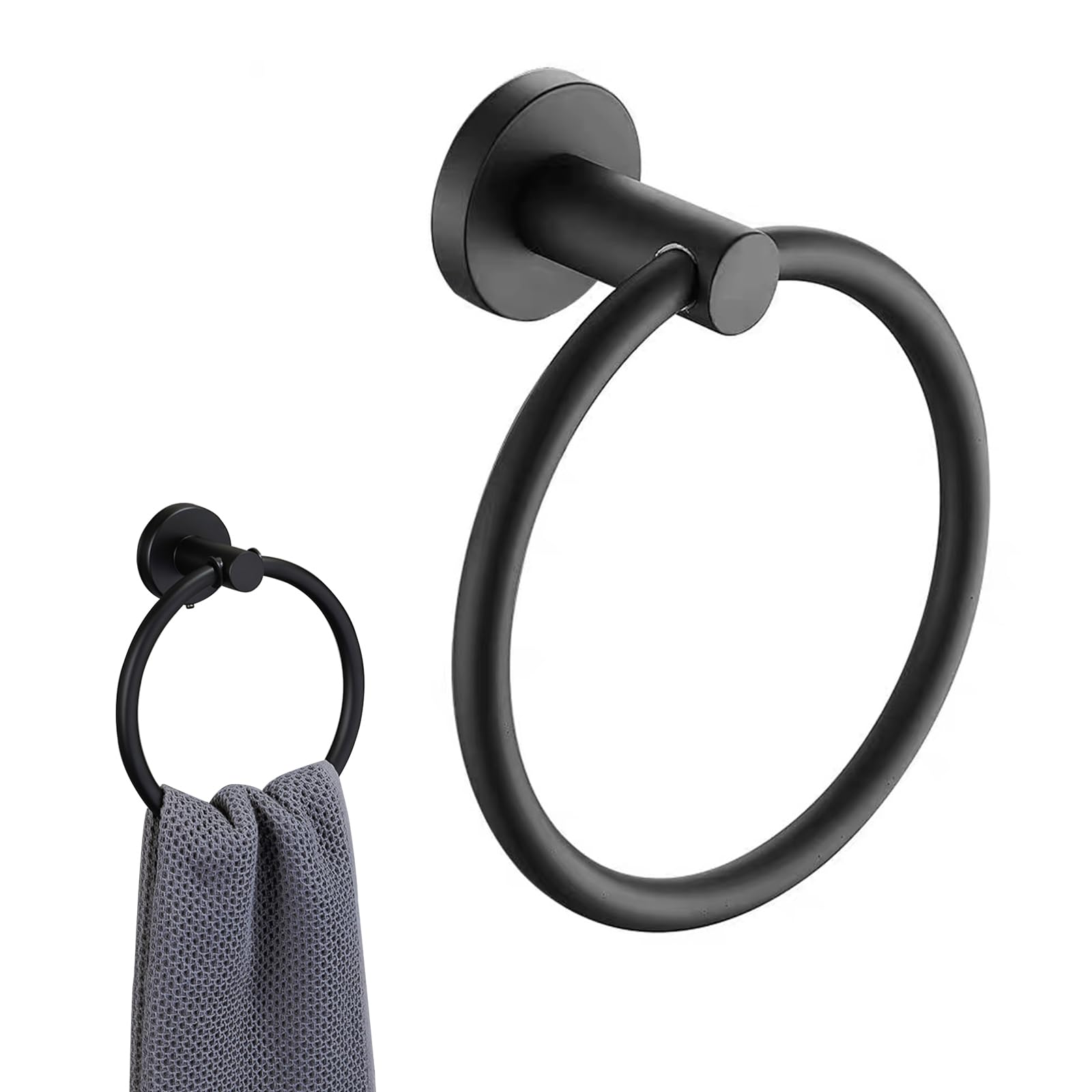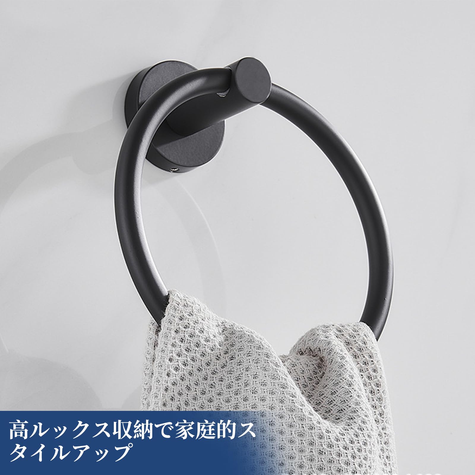 【特価在庫】タオルリング 304ステンレススチール キッチン ハンドタオルホルダー マットブラック タオル掛け 壁掛け 強力粘着 高耐久 モダンスタイル 収納 バスルーム壁用 お風呂 トイレ 洗面所