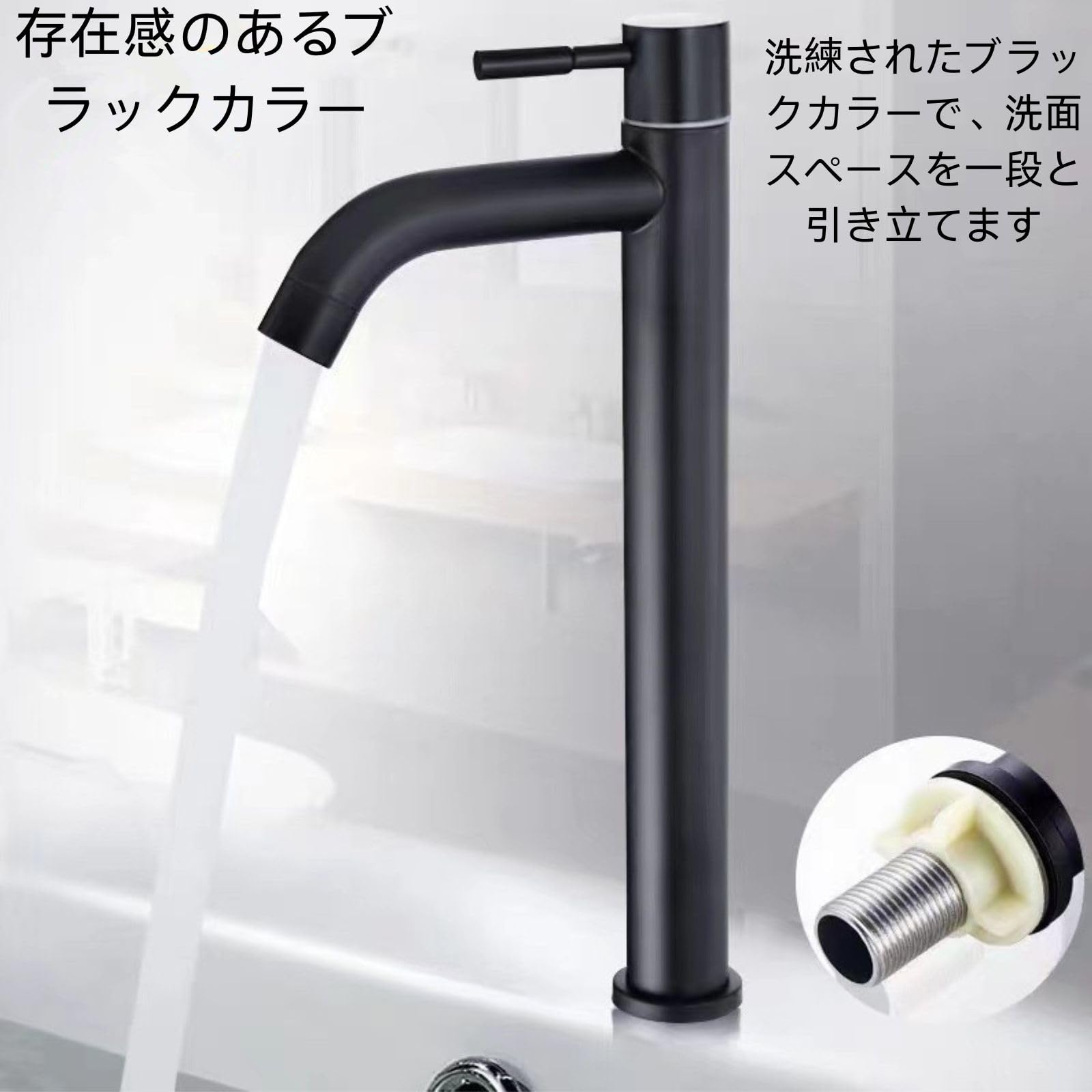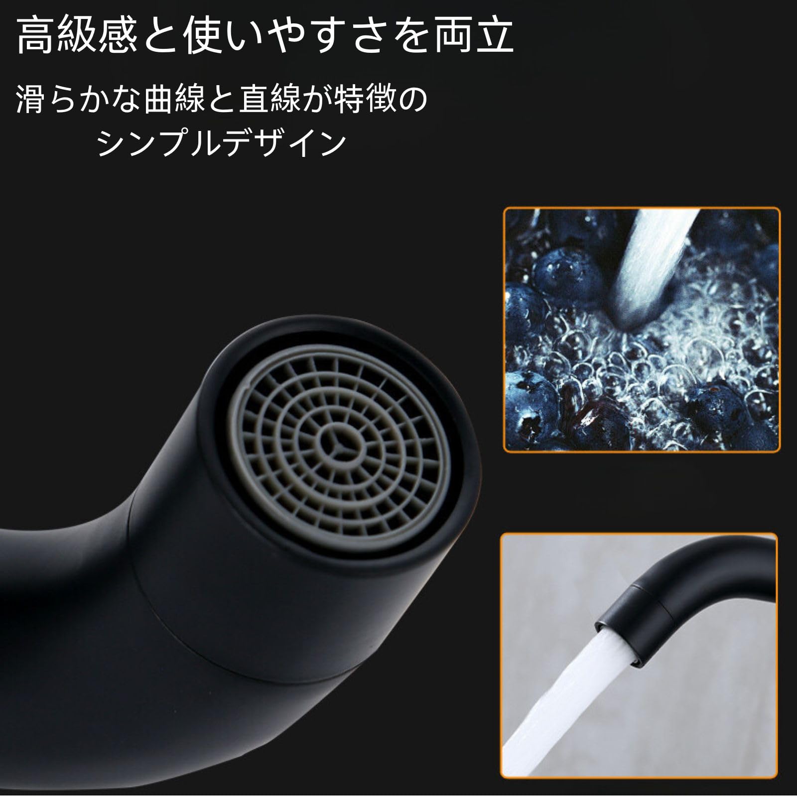 存在感のあるブラックカラー:洗練されたブラックカラーで、洗面スペースを一段と引き立てます。シンプルながらも高級感のあるデザインです
