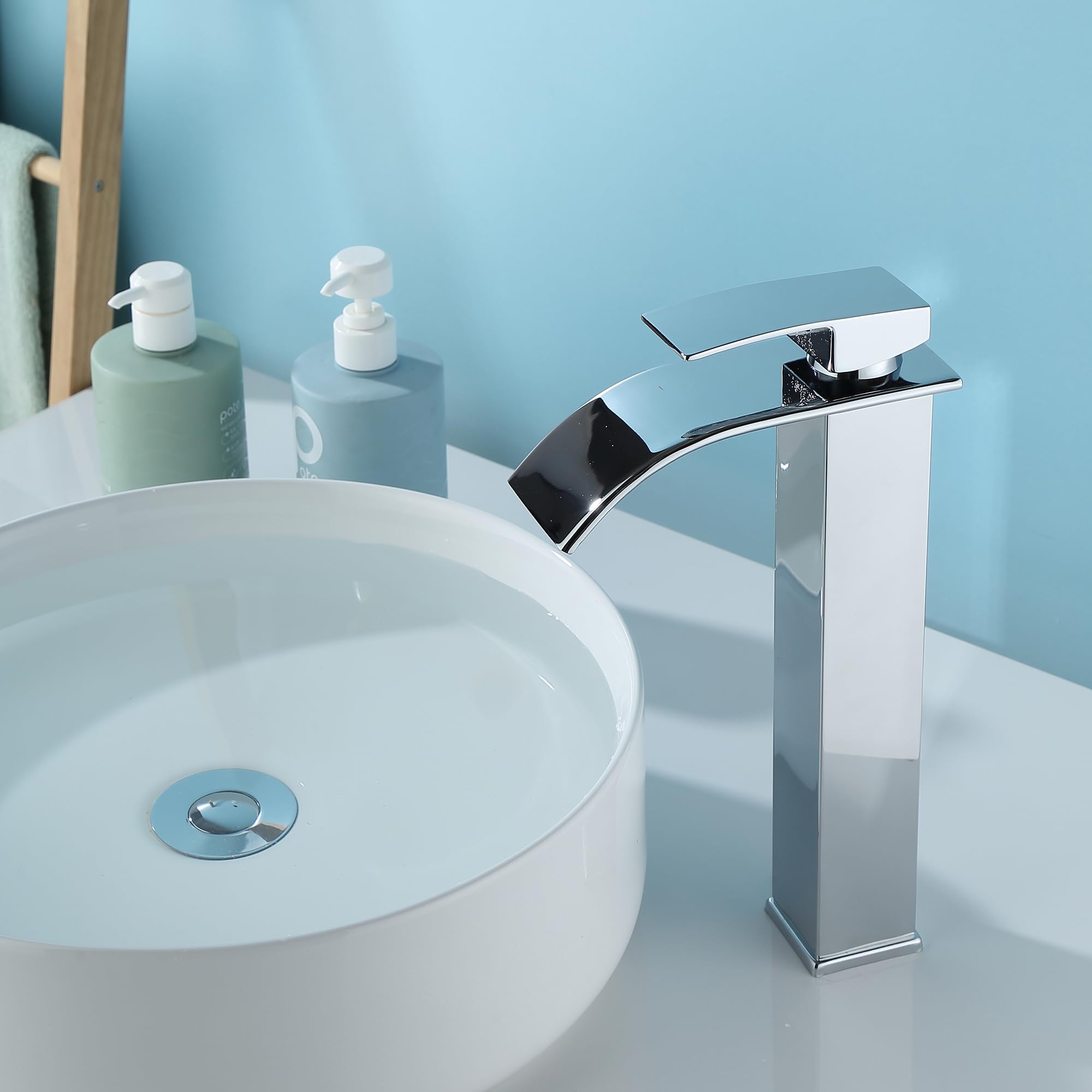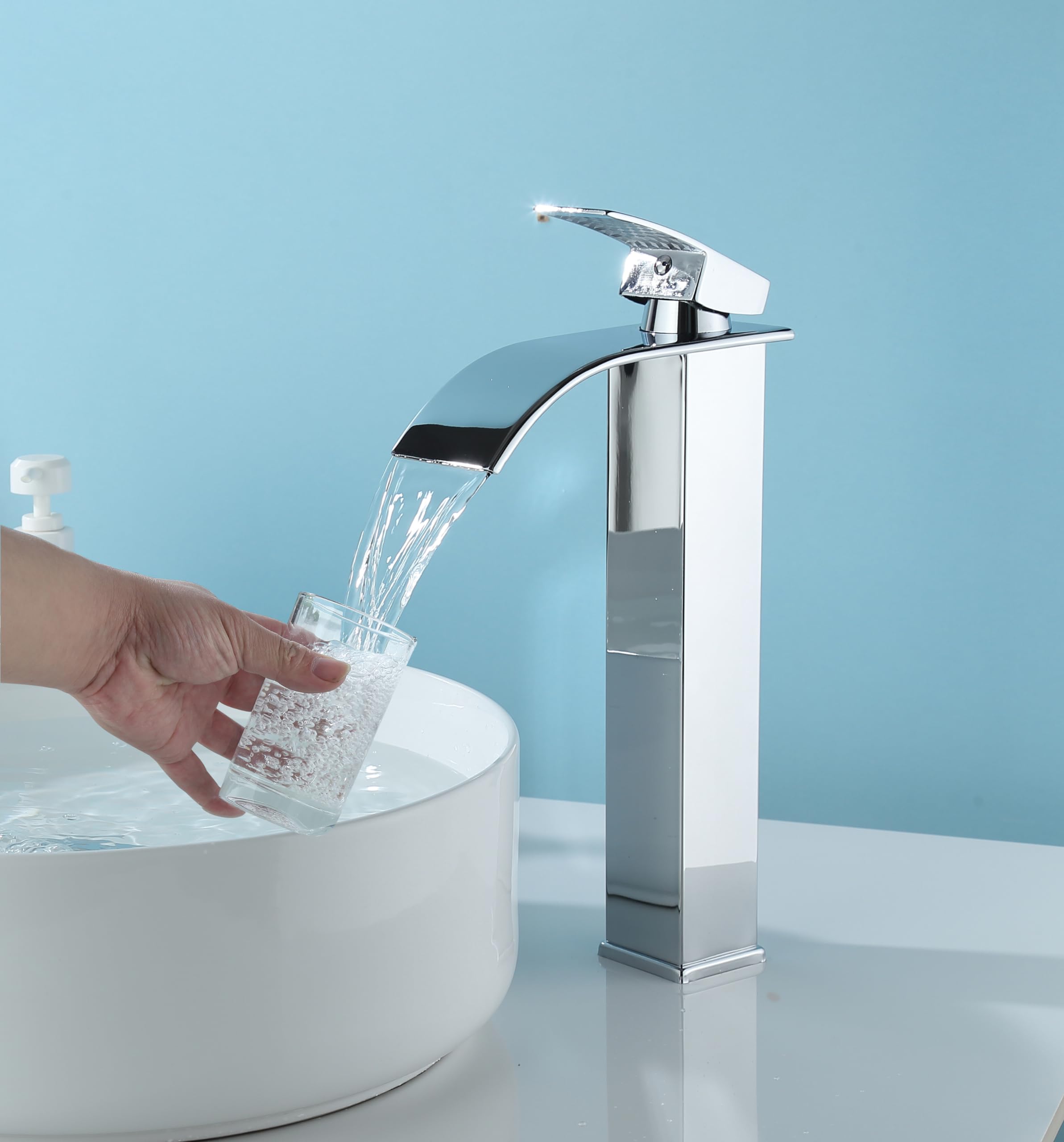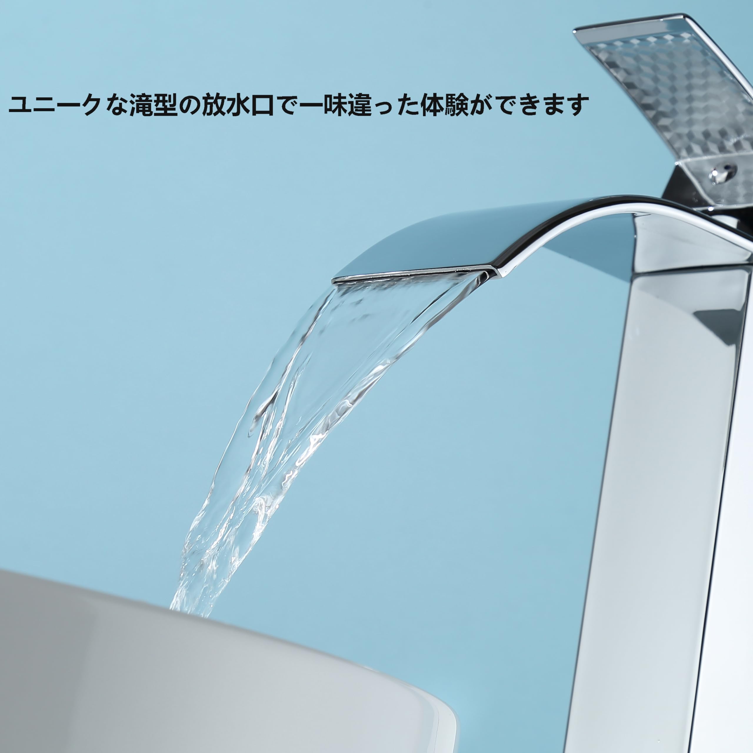 ユニークなデザイン:洗面台の蛇口本体はシンプルでスタイリッシュな正方形のデザインを採用し、水出口はユニークな滝のデザインを採用し、水が滝のように流れ出ることができ、さまざまなスタイルのバスルームに適しています。