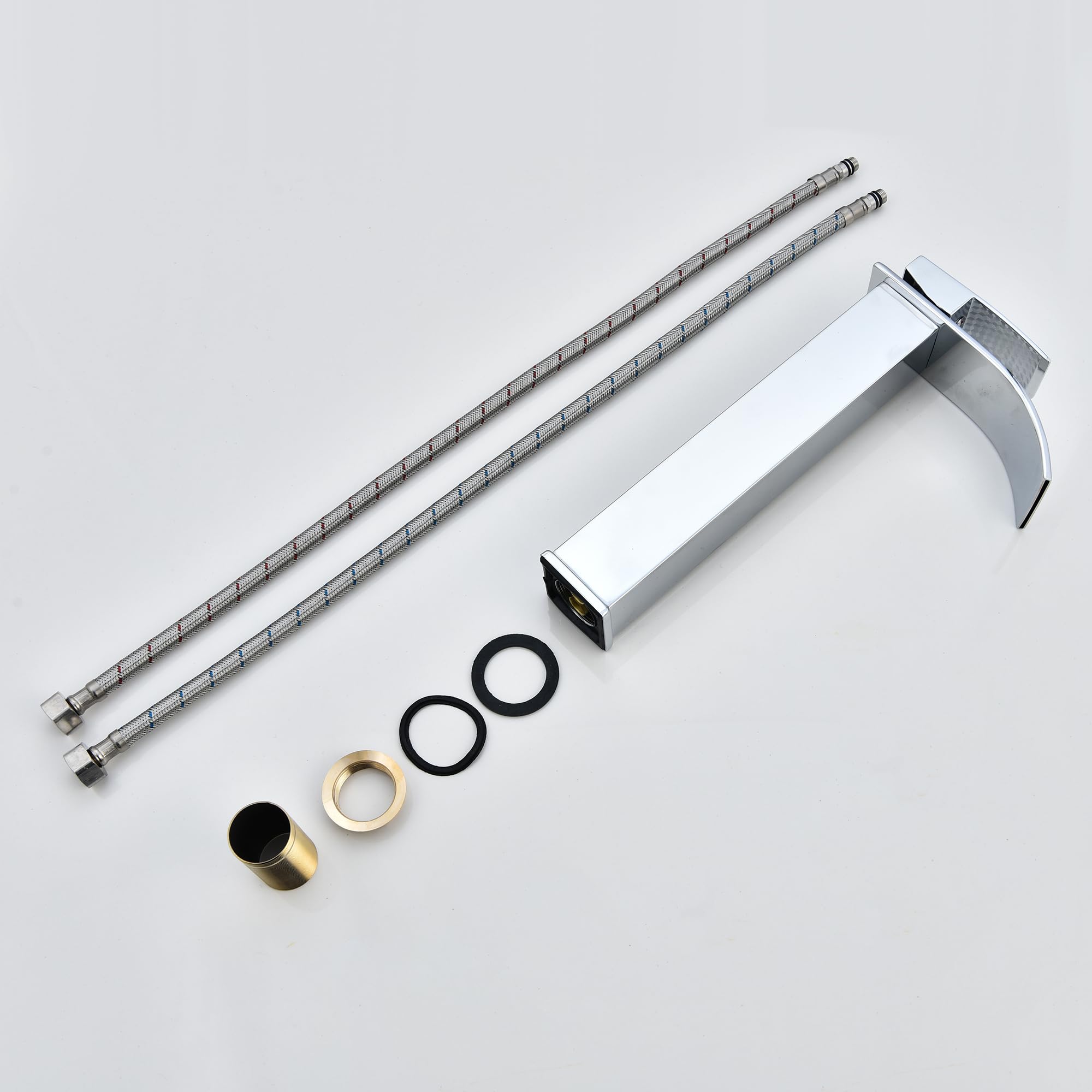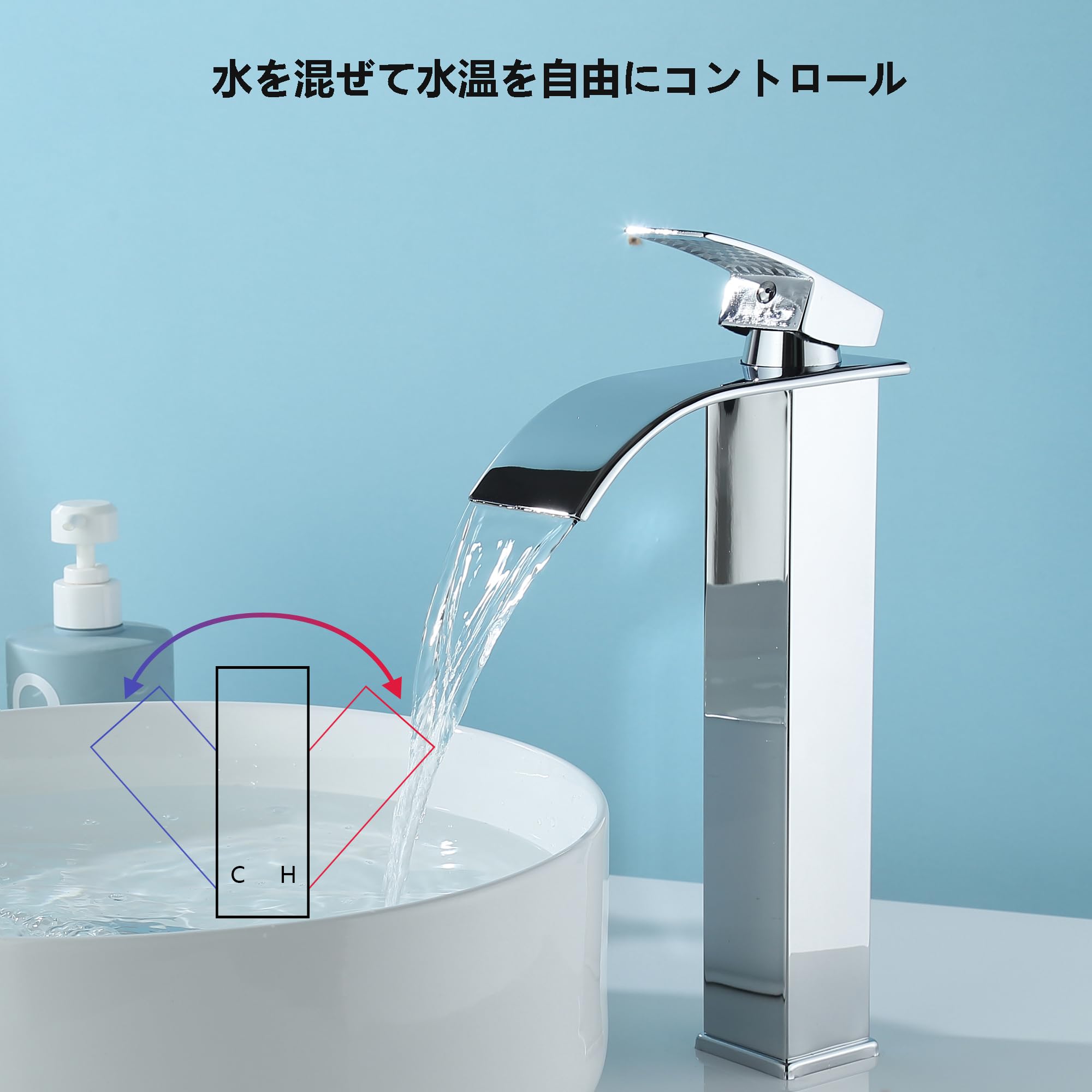 Lychee Light洗面台 蛇口 浴室用滝状吐水口洗面水栓 ステンレス鋼 立水栓 温度調節洗面台 混合水栓 取り付け簡単 取り付けホース付き 日本語説明書付き(高い)