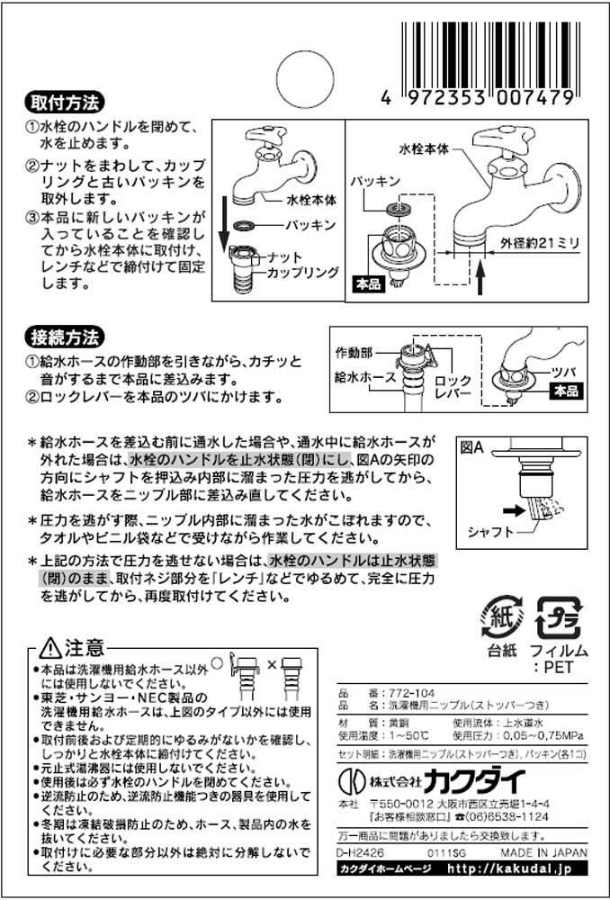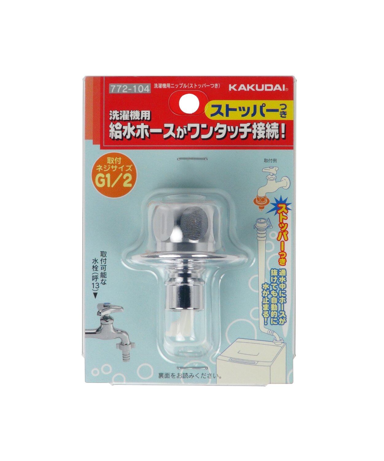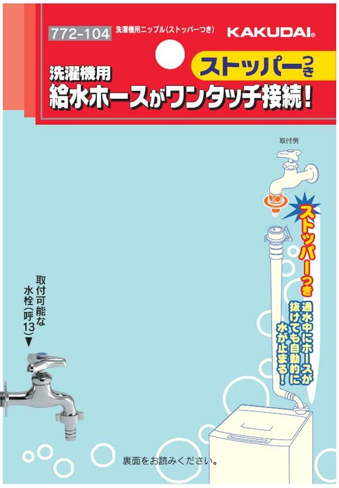 カクダイ 洗濯機用 取替簡単ニップル 呼13カップリング付き横水栓用 給水ホースをワンタッチ接続 水漏れ防止ストッパー付き 金属製 772-104