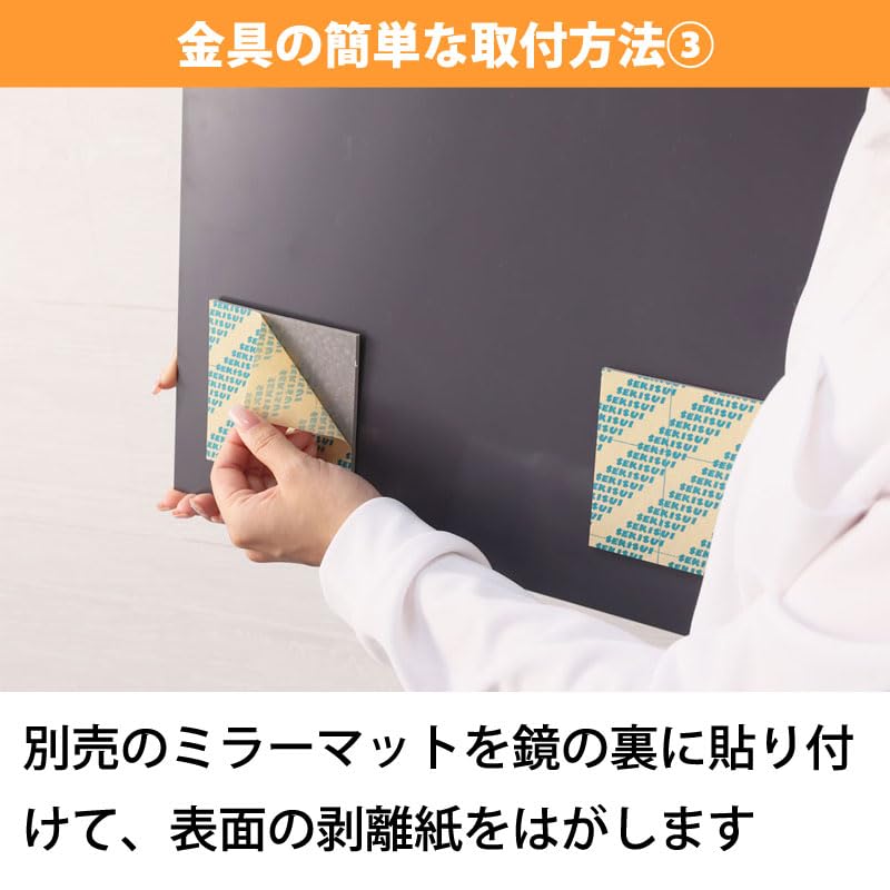 【鏡の保護と安全性】 金具の内側にCRスポンジを貼り付け済み。鏡とのすき間を調整しつつ、すべり止め・割れ防止に効果があります。