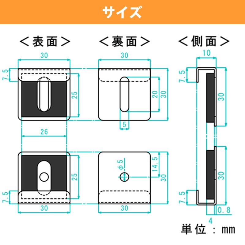 【サイズ 外寸】 金具:幅30mm × 高さ30mm × 奥行10mm ネジ:長さ25mm(+ドライバー対応)