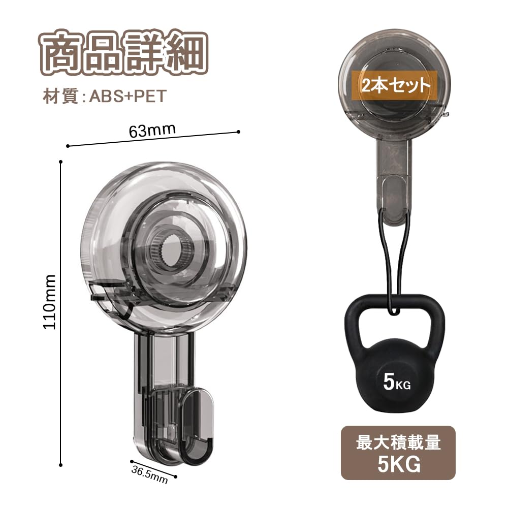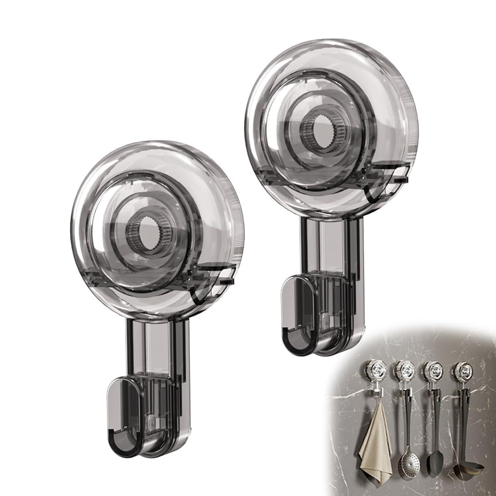 【数量限】UrbanPulse 吸盤 フック 強力 壁掛けフック 繰り返し使用可能 傷つけない 透明 真空 ネジ不要 高い耐荷重 玄関 キッチン バスルーム 浴室 壁掛け収納 防水 2個入り (グレー)