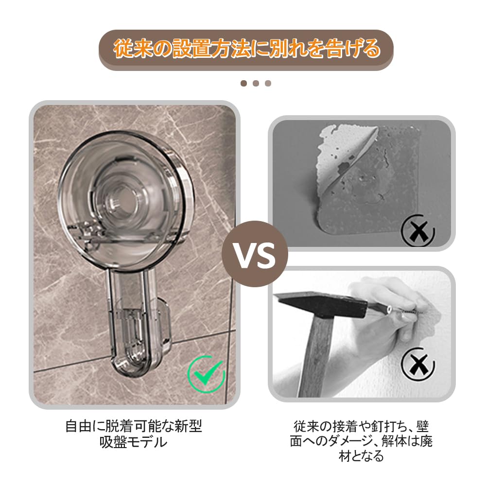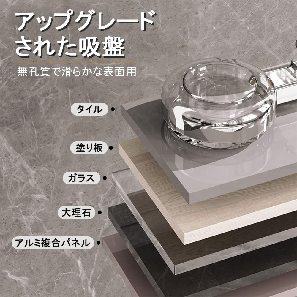 簡単な取り付け: 革新的な吸盤デザインで、ネジ、釘、接着剤は必要なく、穏やかな圧力でガラス、タイルなどの非多孔質で滑らかな表面にしっかりと固定することができ、壁を損傷から保護し、便利なツールフリーの設置体験を実現します。
