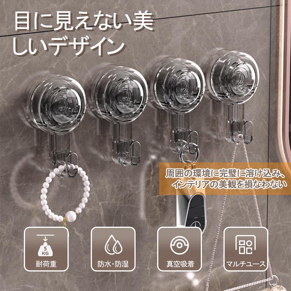 目に見えない美しいデザイン: 各セットには無色透明の吸盤フックが2個入っており、ミニマリストのデザインは周囲と完璧に調和し、インテリアの美的感覚を妨げません。