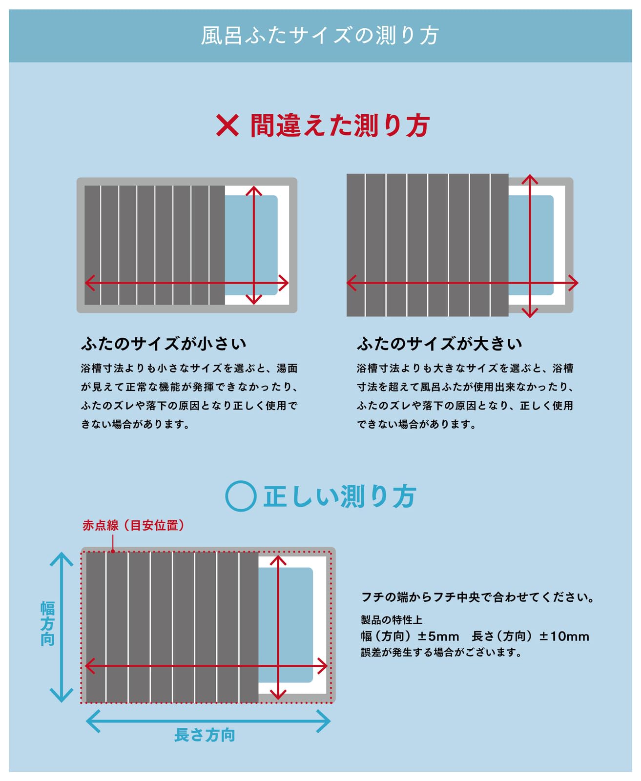 ■商品を選びの際は浴槽のふちに十分かかるサイズをお選びください■商品の特性上、幅方向に対して±5mm 長さ方向に対して±10mm程度の誤差が生じる場合がございます