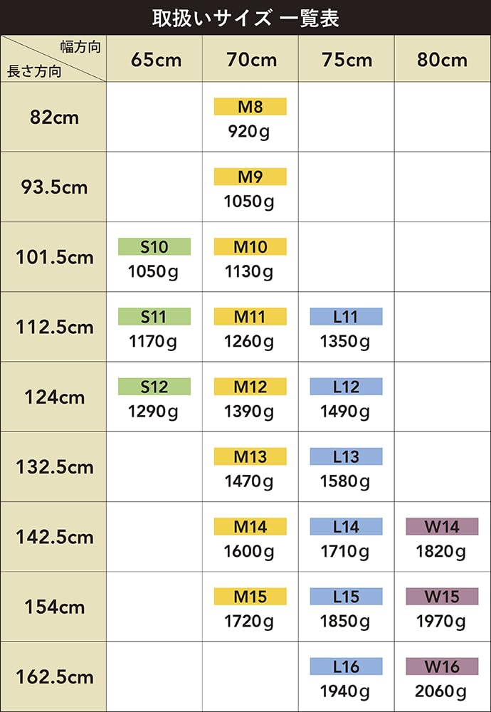 ■製品サイズ:(約)幅:75cm×長さ:154cm×厚み:8mm、製品重量:(約)1850g 耐熱温度:70度