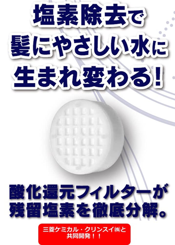 塩素除去能力:約8,000Lまでは水道水の塩素濃度1ppmを0.5ppm以下にろ過