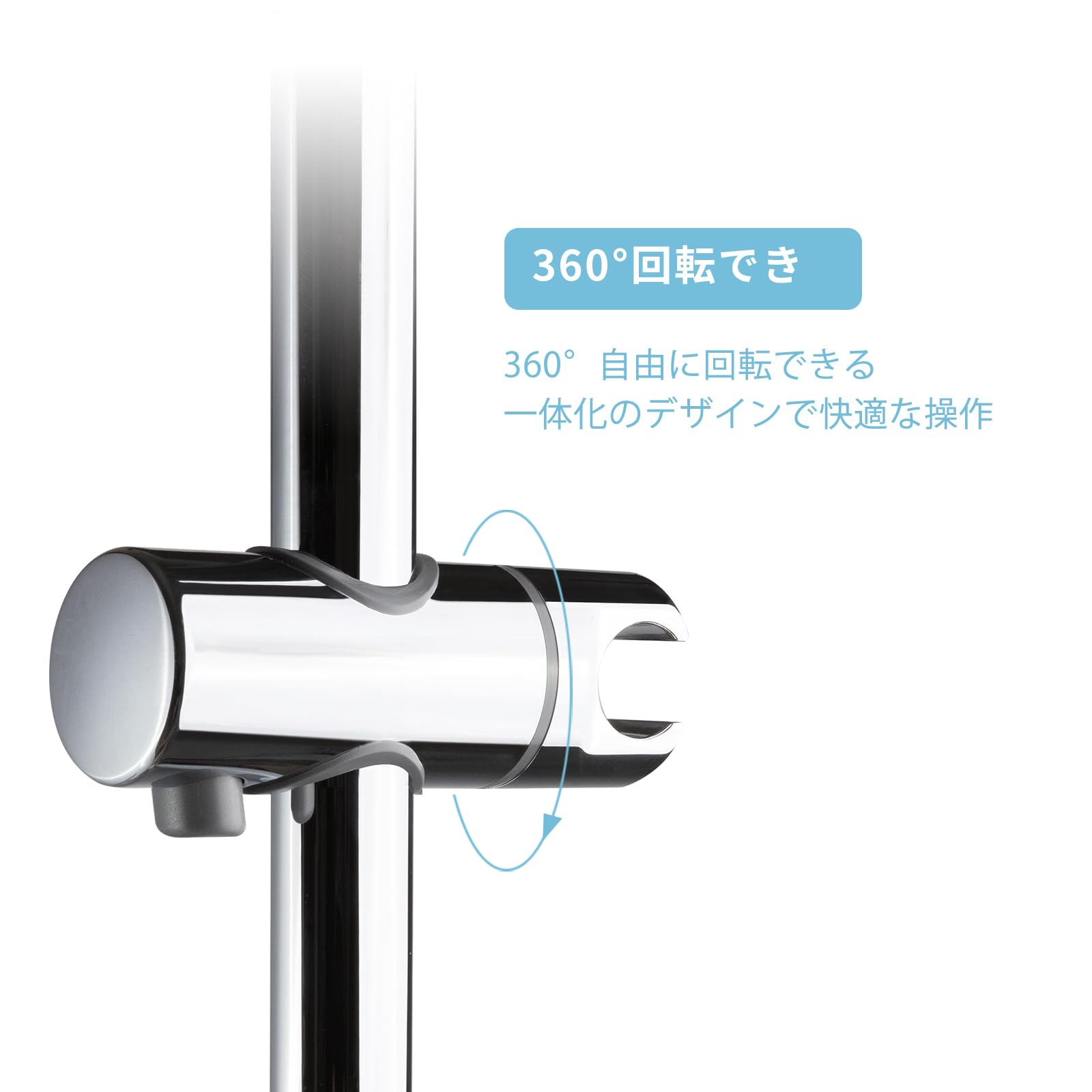 [360度回転]フック部は360度回転できるので、シャワー角度が自由自在に調整できます。お好みの角度でシャワーを浴びることができます。