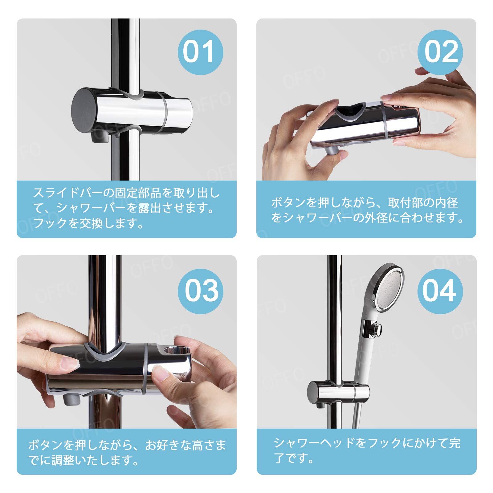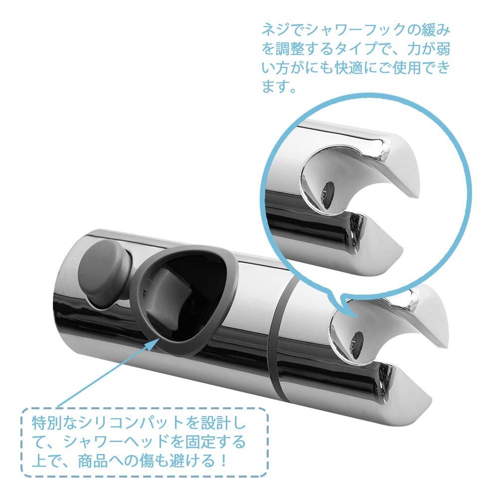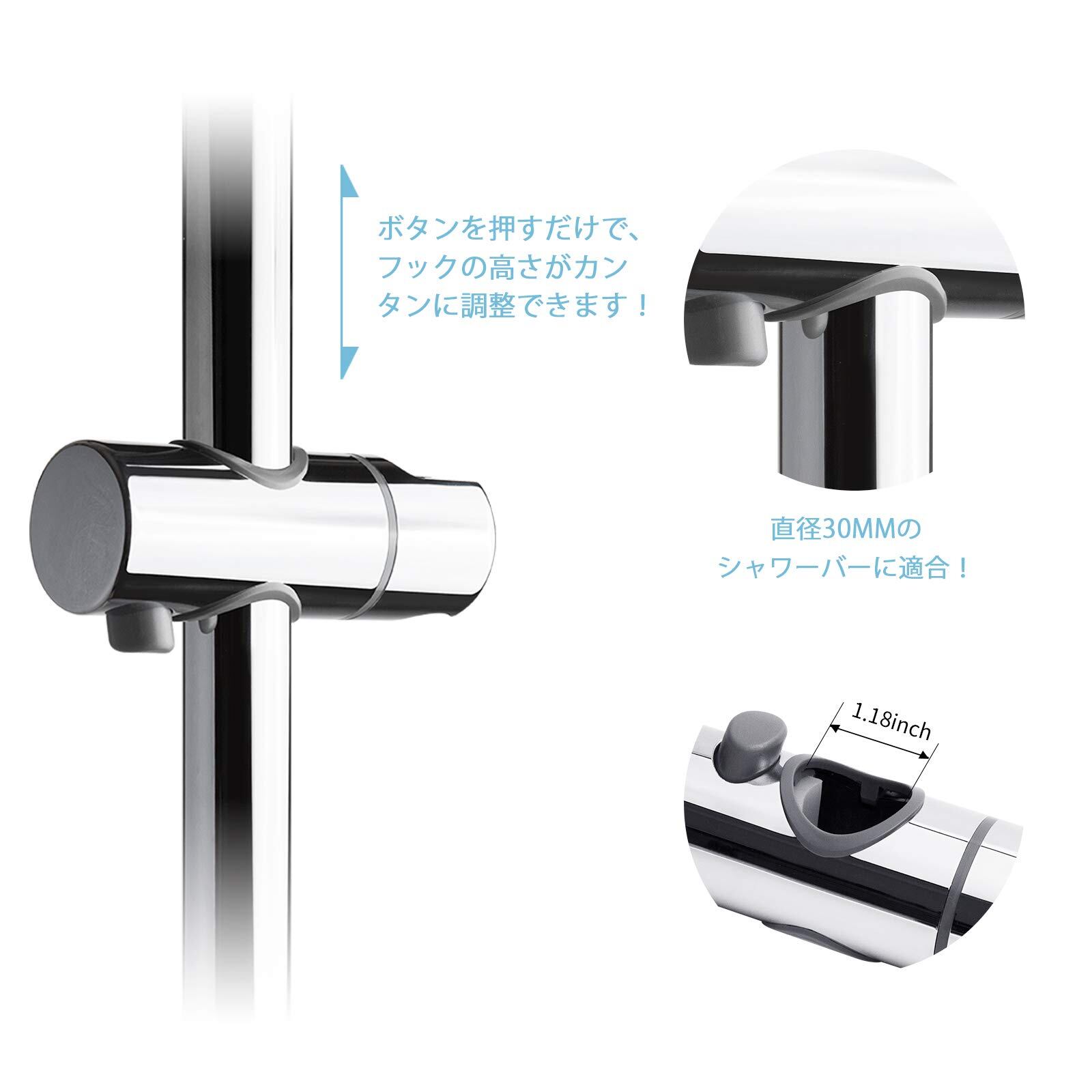 OFFO シャワーフック 30mm シャワーヘッドホルダー シャワー スライドバー用シャワーフック 360°自由回転 高さ調整可能 日本語取扱説明書付き クロムメッキ