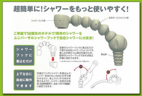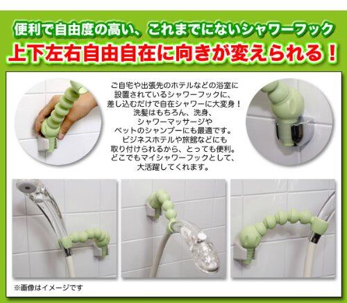 お使いのシャワーフックに差し込むだけで、シャワーの向きが上下左右自在に変えられます。