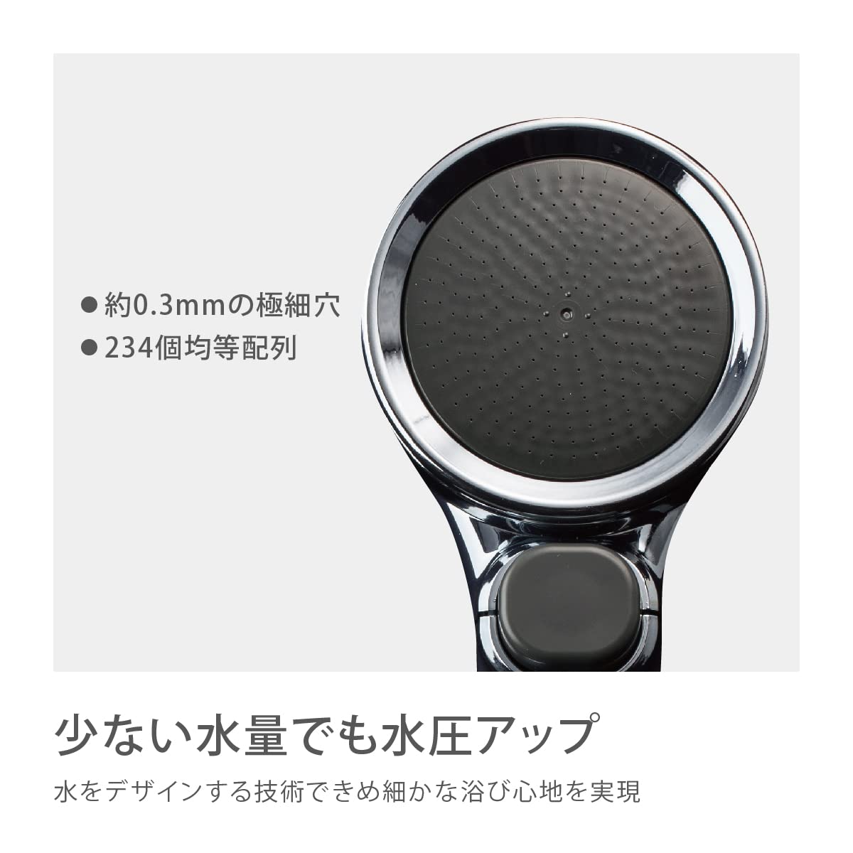 水圧が低くてもシャワーに勢いをプラスすることができる節水低水圧タイプのシャワーヘッドです。