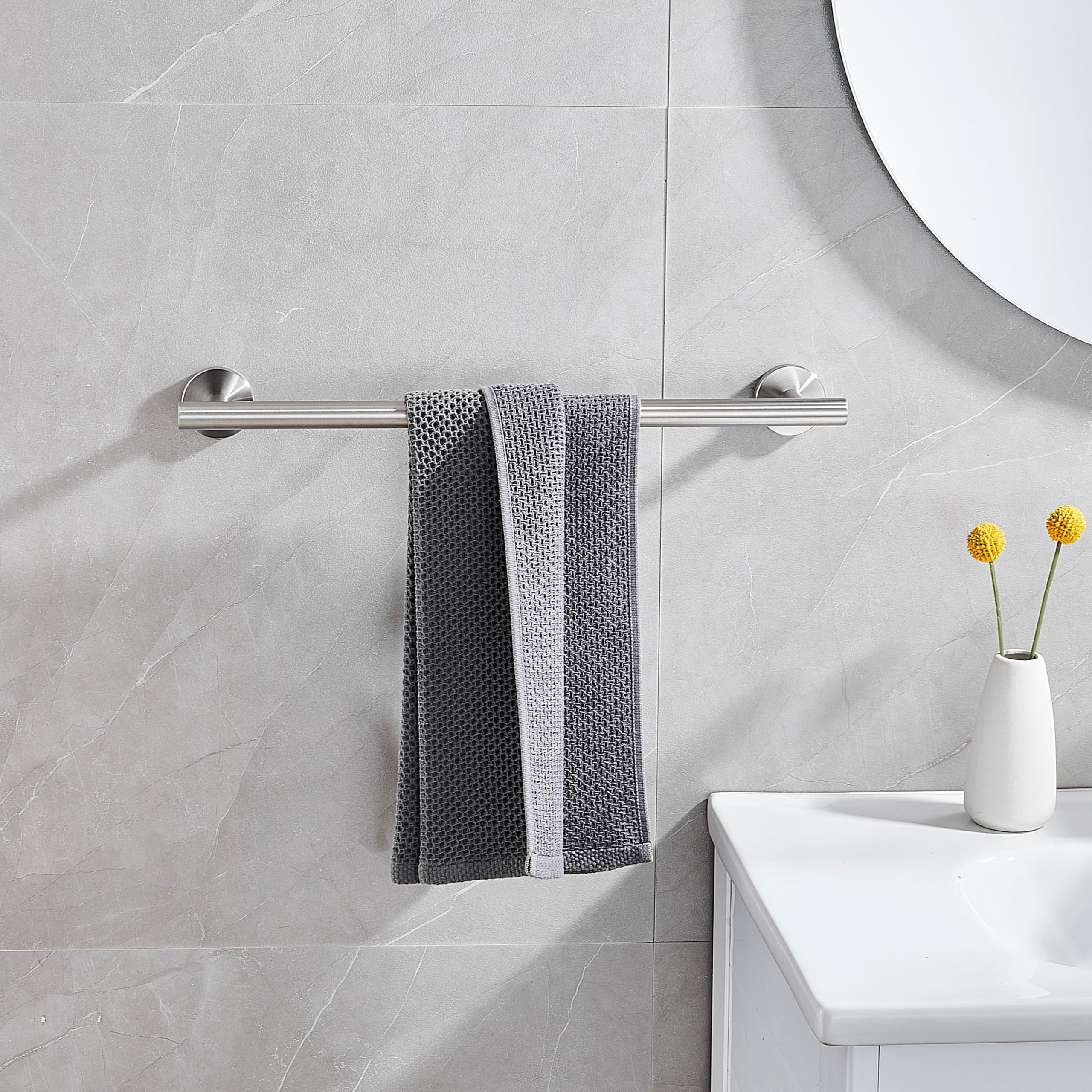 【特価】KWQKEMタオルバー ステンレス丸座 タオル掛け おしゃれ たおるハンガー アイアンバ ー 壁掛け ネジ付き タオルホルダートイレ 浴室 バスルームアクセサリー キッチン用 省スペース (シルバ タオルバー45cm)