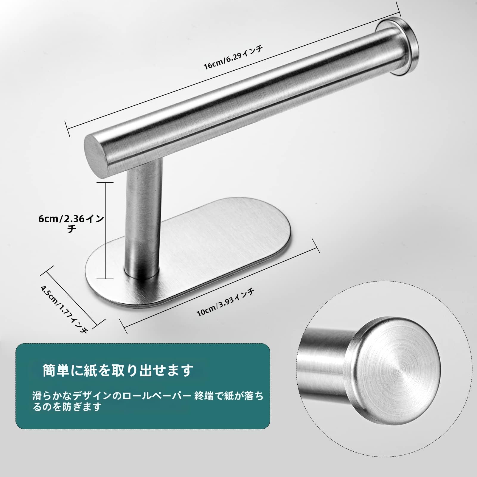 実用的なデザイン:粘着性のあるトイレットペーパーロールホルダー。オープンエンドのデザインで素早くロールチェンジできます。アームの端がカーブして持ちやすく、ロールペーパーが滑り落ちにくくなっています。
