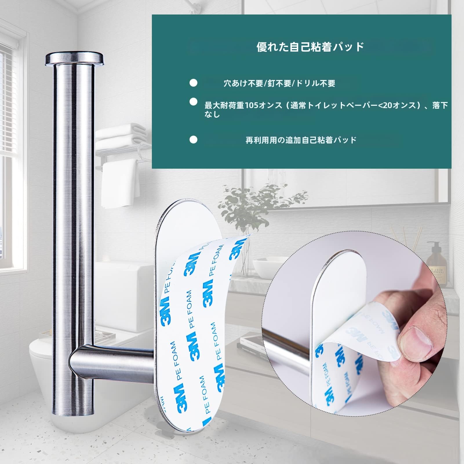【特価】YUET トイレットペーパーホルダー 壁取り付け、3M 粘着式トイレットロールホルダー SUS 304 ステンレススチール トイレットペーパーホルダー バスルーム用 ドリル不要 (せんじょうぎん)
