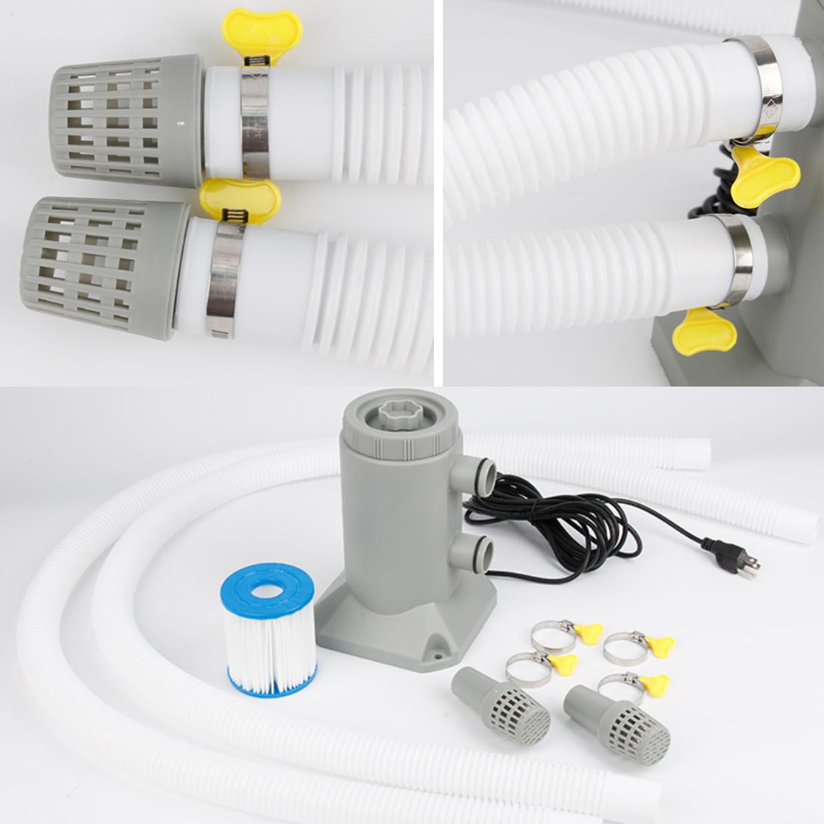 プール用ポンプ 地上プール用カートリッジフィルターポンプ カートリッジフィルターポンプ 250L/H流量 浄水器 低ノイズ 家庭用プールクリーナー 2ホース/フィルターカートリッジ付き日本語取扱説明書 (1セット)