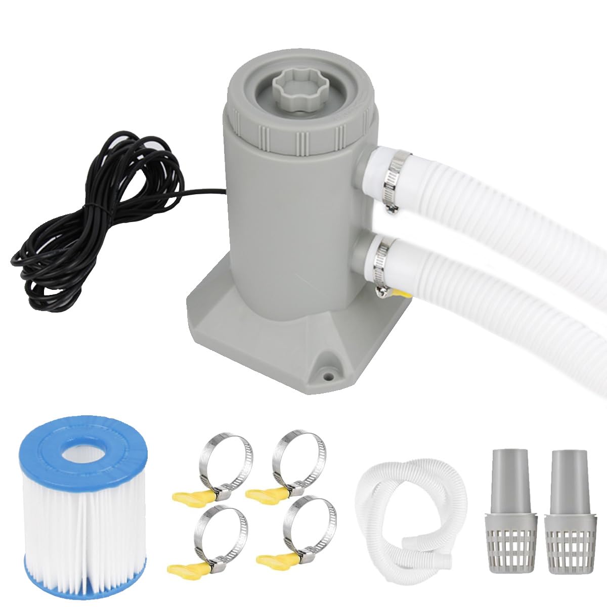 【新着】プール用ポンプ 地上プール用カートリッジフィルターポンプ カートリッジフィルターポンプ 250L/H流量 浄水器 低ノイズ 家庭用プールクリーナー 2ホース/フィルターカートリッジ付き日本語取扱説明書 (1セット)