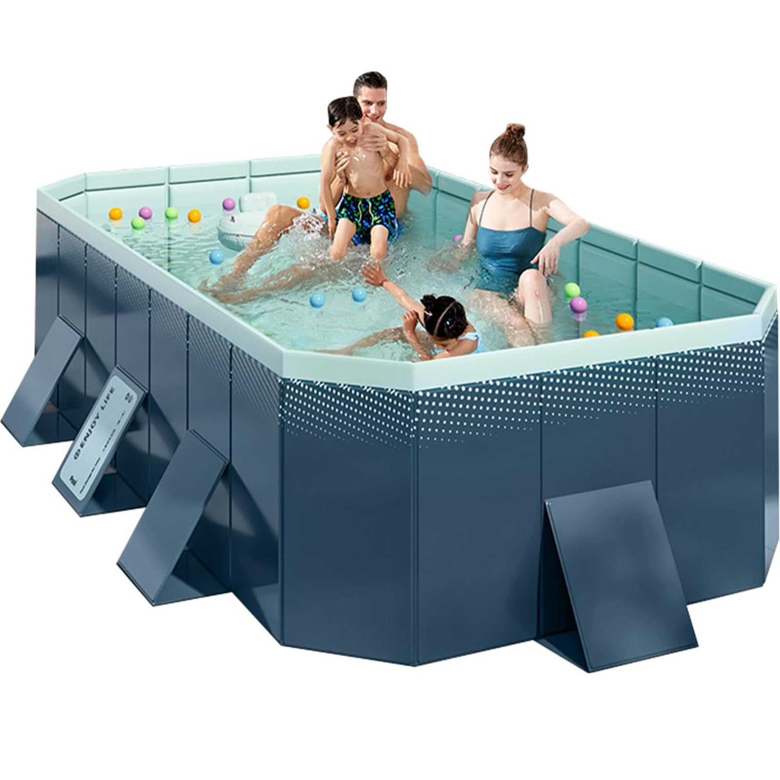 【水漏れ防止・安定した三角構造】プールの側面には厚さ 7 ミリメートルの高強度の 4 層複合材料を使用し、底面には厚みを増した高品質の PVC 材料を採用しています。これにより、優れた耐磨耗性と耐貫通性を備えており、水漏れを防止することができます。従来のインフレータブルプールと比較して、耐用年数は 3 倍以上に延びています。側面には安定した三角形状の支持板を使用しており、プールの圧力と変形に対する抵抗力を強化しています。あなたはお子さんと一緒に楽しく夏の水遊びの時間を過ごすことができます!