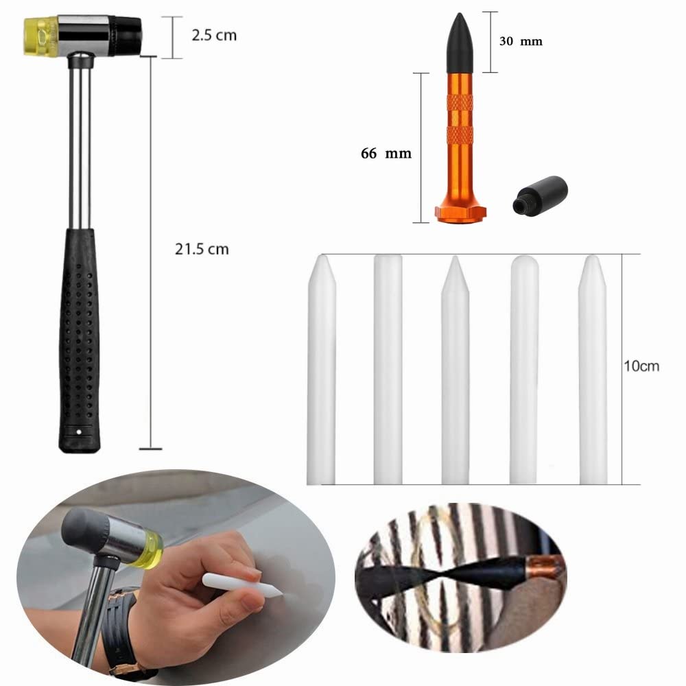 【商品内容】この凹み修理ツールセットは型違ったデントリペアツール*6、修復ツールヘッド黒いタイプ*8、レッドドアウェッジ*1、オレンジ修復ペン*1、白い修復ペン*5、修復槌*1があります。