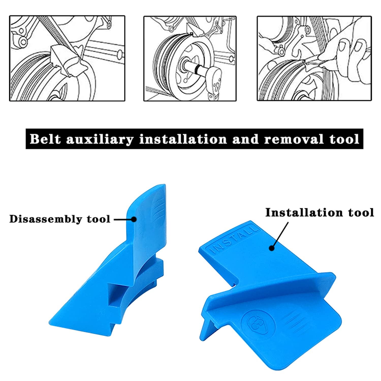 【機能】リムーバーとインストーラーを含む2ピースストレッチベルトツールセット。あらゆるストレッチ式ベルトの取り外し&取り付けの両方に使用できます。同様の製品と比較して、この製品は最低のコストで効率的に作業を完了します。