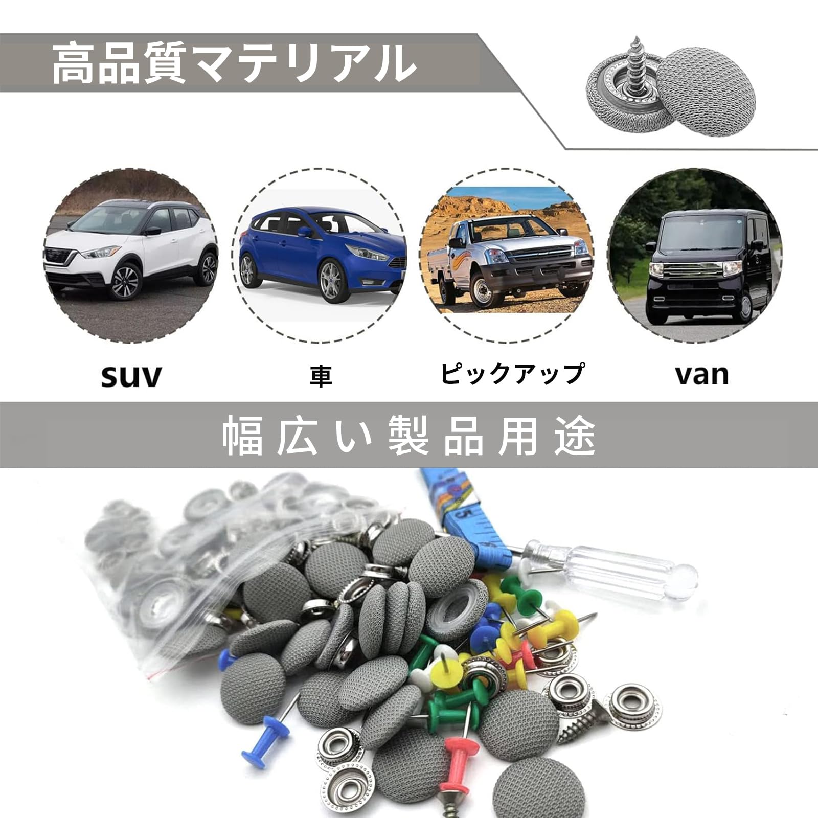 【特価在庫】aninako 60個 車天井垂れ修理 リベット 修理ボタン ルーフリベット こていそうち 自動車室内天井布固定修理に適している 取り付けツール付き すべての車に適合 (格子/グレー) | GIGATERA
