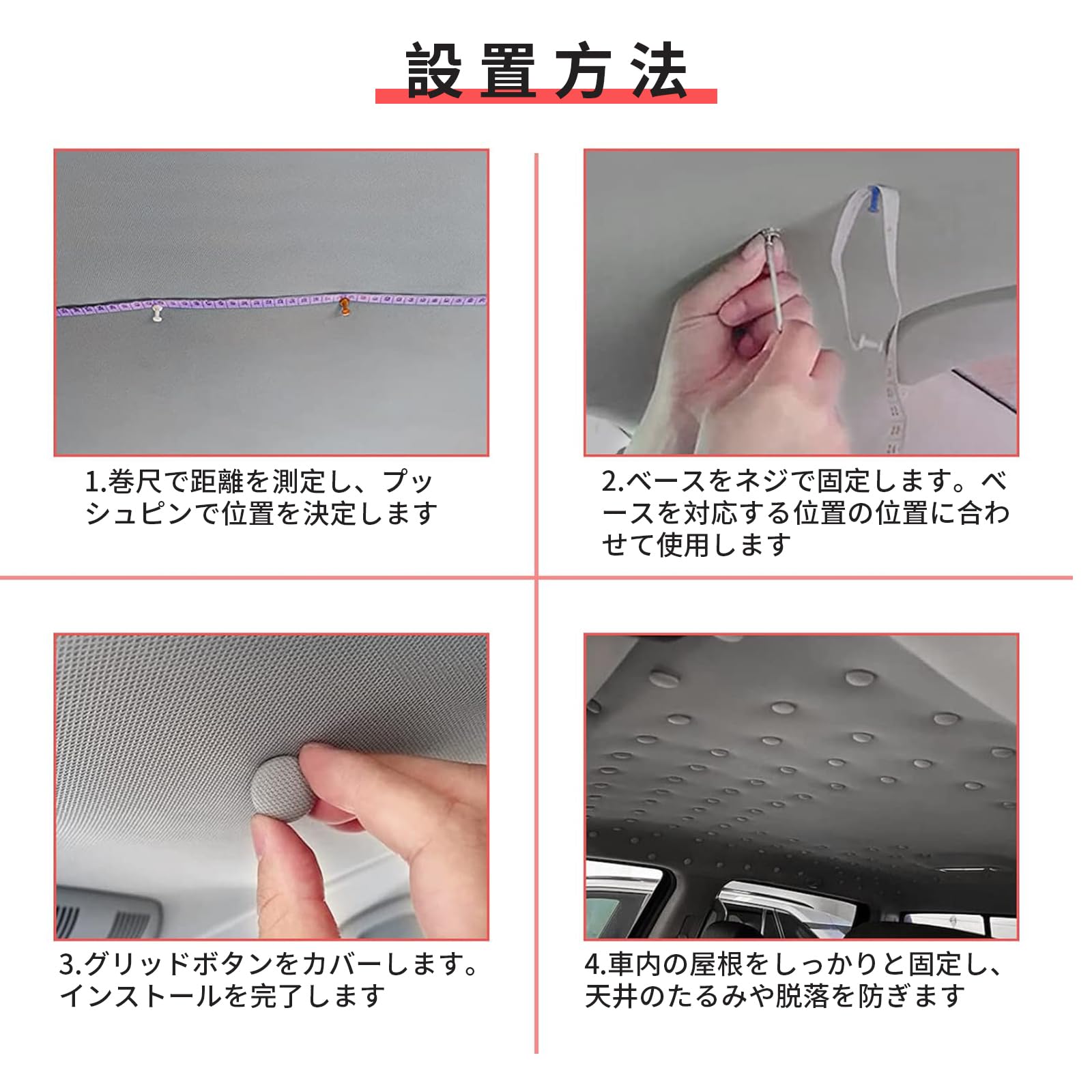 【取り付けが便利】距離を測定するために巻き尺を使いやすく、画鋲で位置を確定した後、ネジでベースを固定し、メッシュボタンをかぶせる。他のツールは必要なく、設置が便利です。取り付け相互間の距離は12 ~ 15 cmが推奨されており、これによりルーフメンテナンスボタンは秩序を維持することができます。