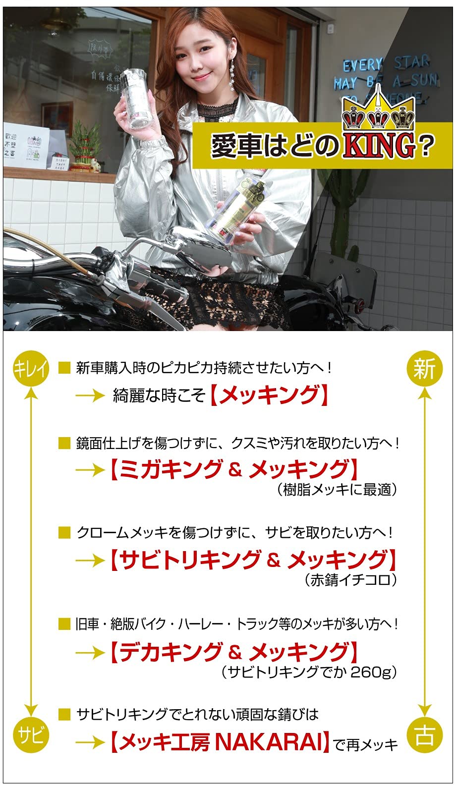 メッキ磨き剤(鏡面用)。鏡面クロムメッキについた汚れ、くみすを取ります