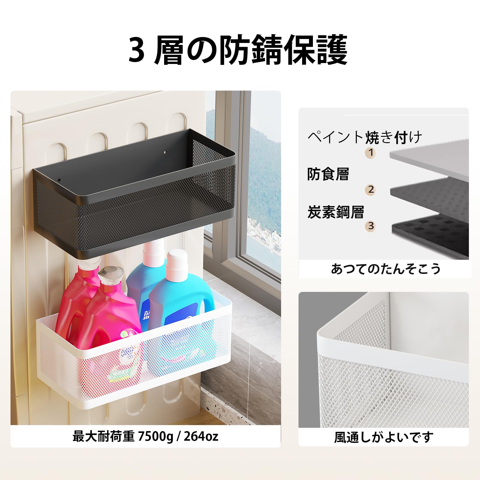 【耐久性】プレミアム メッシュ アイアンは、スタイリッシュな外観で頑丈でしっかりした構造を実現します。また、広々としたサイズと高めのガードレール デザインにより、特に実用性を最大限に高めています。10 cm のガードレールは、アイテムの落下を防ぎ、保管をよりきれいにします。グリッド デザインにより、通気性と防錆性が確保されます。