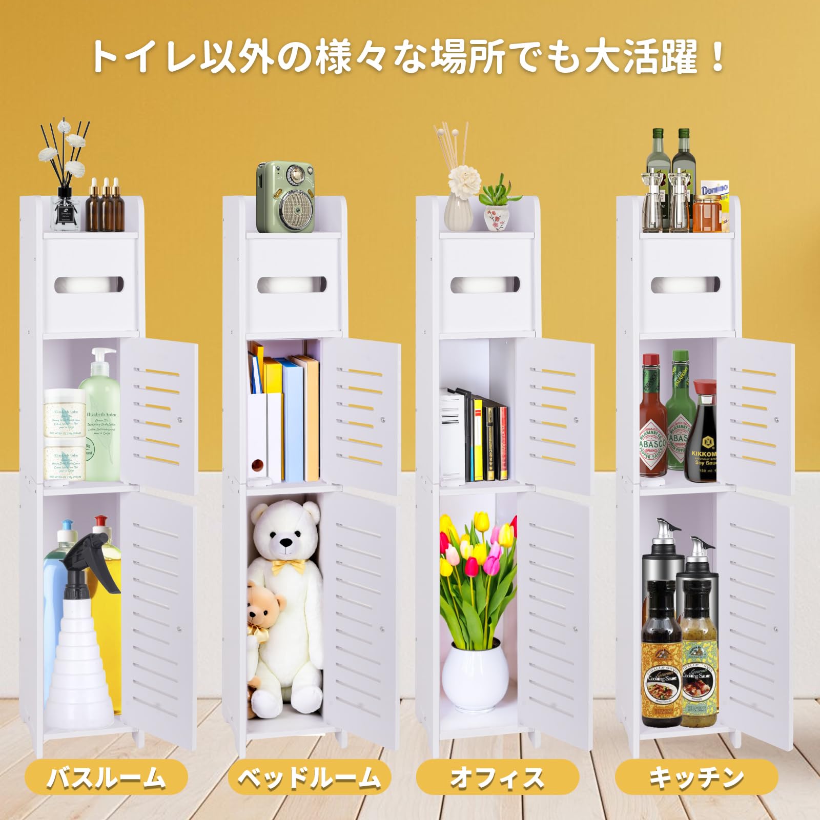 トイレ収納 スリム トイレラック 隙間収納ラック ランドリー収納 玄関収納ラック すき間収納 幅15*奥行15*高さ80cm ペーパー ティッシュ収納 組み立て簡単 省スペース トイレ/玄関/洗面所/寝室/書斎/リビングルーム (Aタイプ)