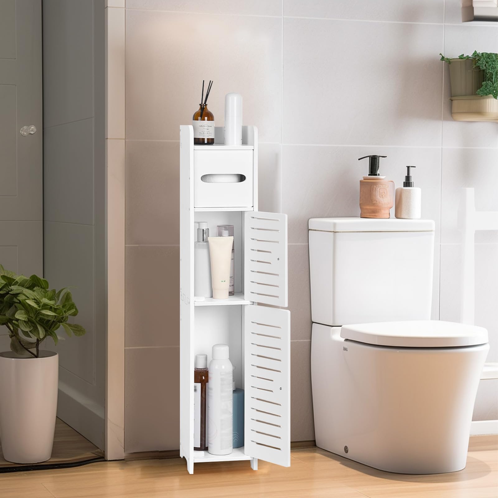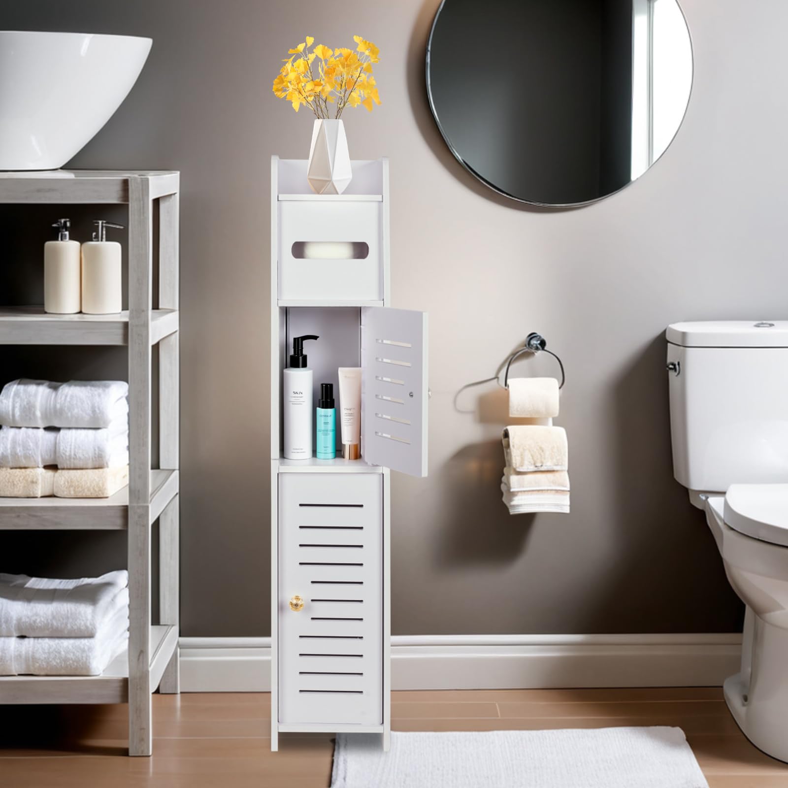 【数量限】トイレ収納 スリム トイレラック 隙間収納ラック ランドリー収納 玄関収納ラック すき間収納 幅15*奥行15*高さ80cm ペーパー ティッシュ収納 組み立て簡単 省スペース トイレ/玄関/洗面所/寝室/書斎/リビングルーム (Aタイプ)
