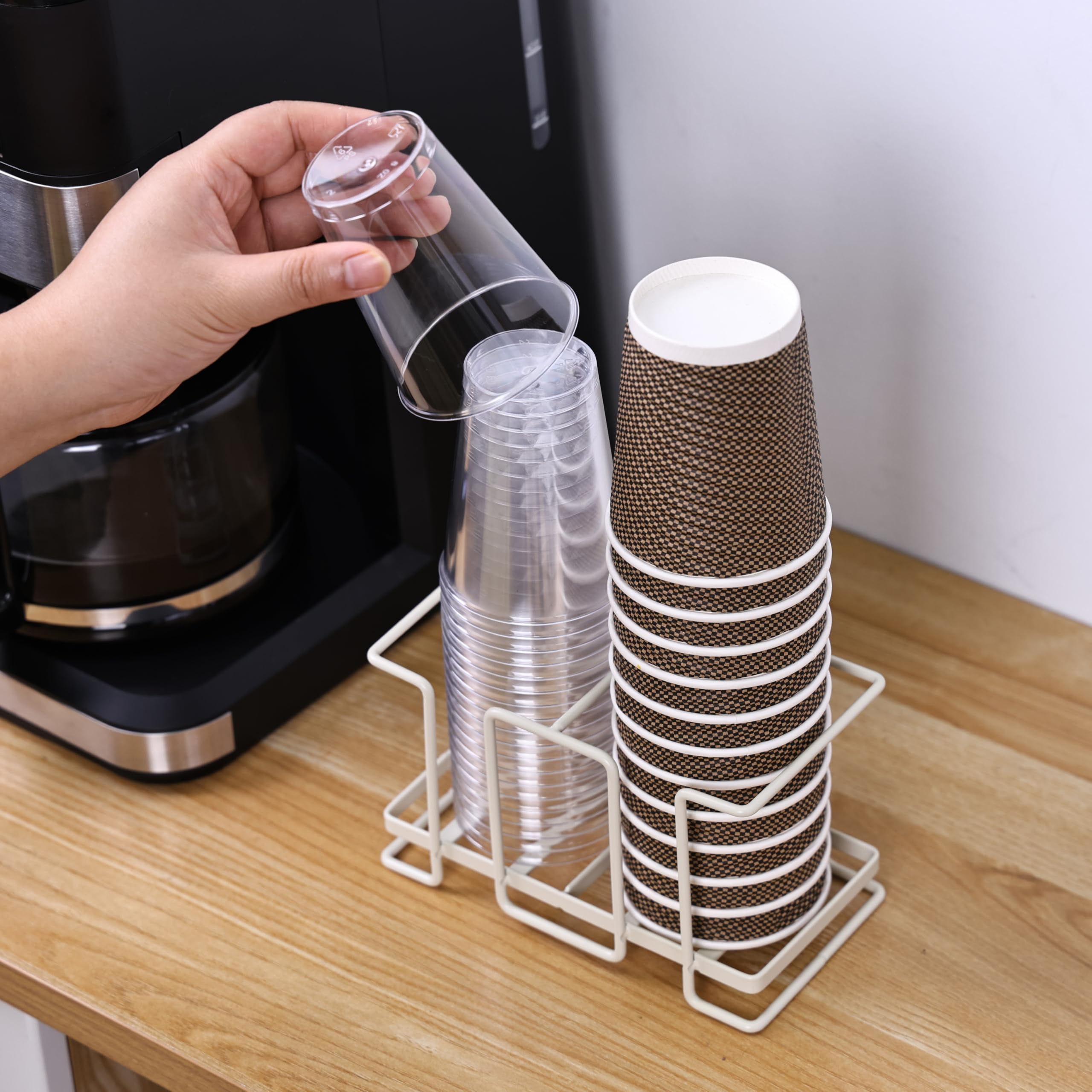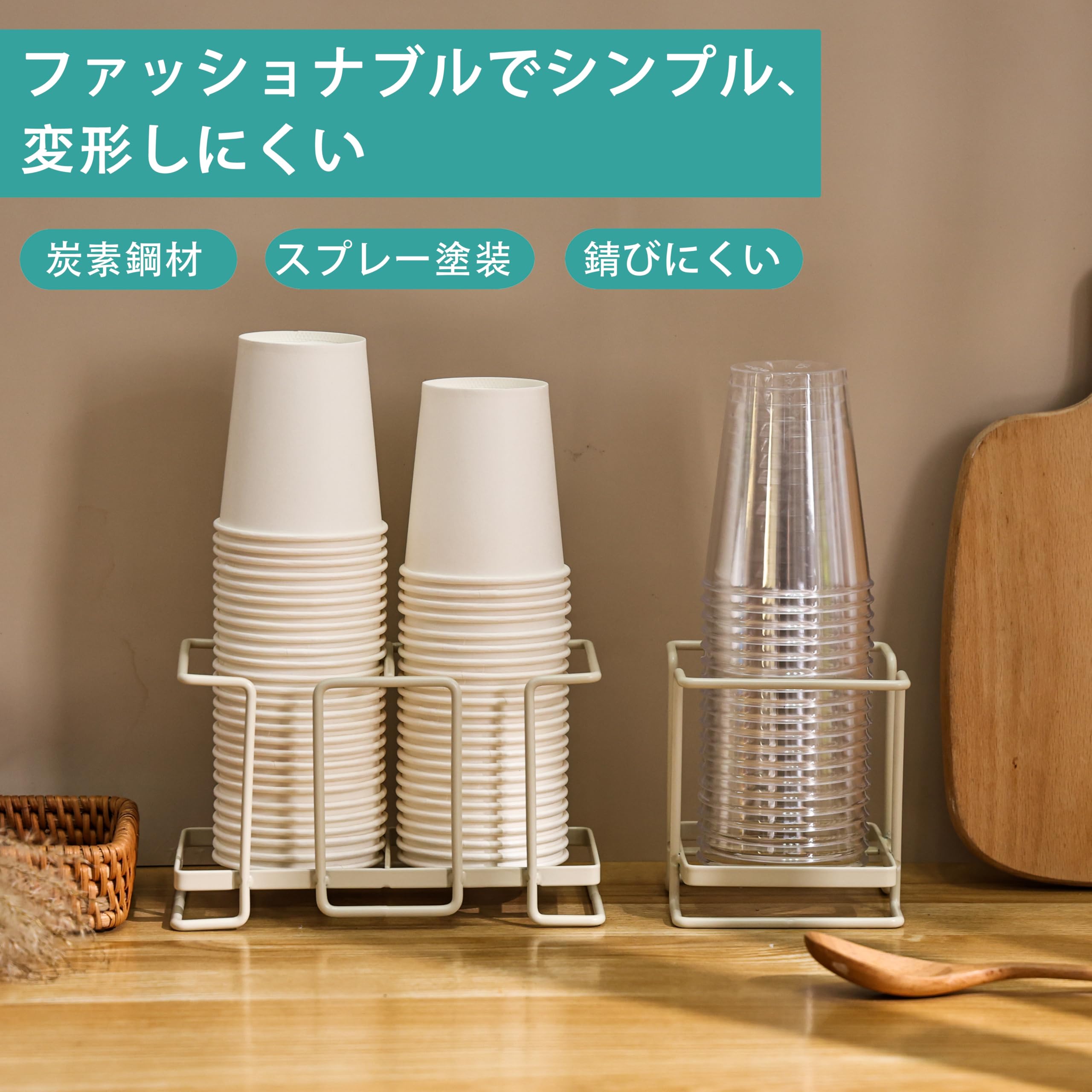 【多機能】このカップホルダーはグラスの水切りラックとしても使用できます(ハンドル付きのコーヒーカップにも適しています)。そのため、紙コップだけでなく、水切りやカップなどの水切りや保管にも使えます。
