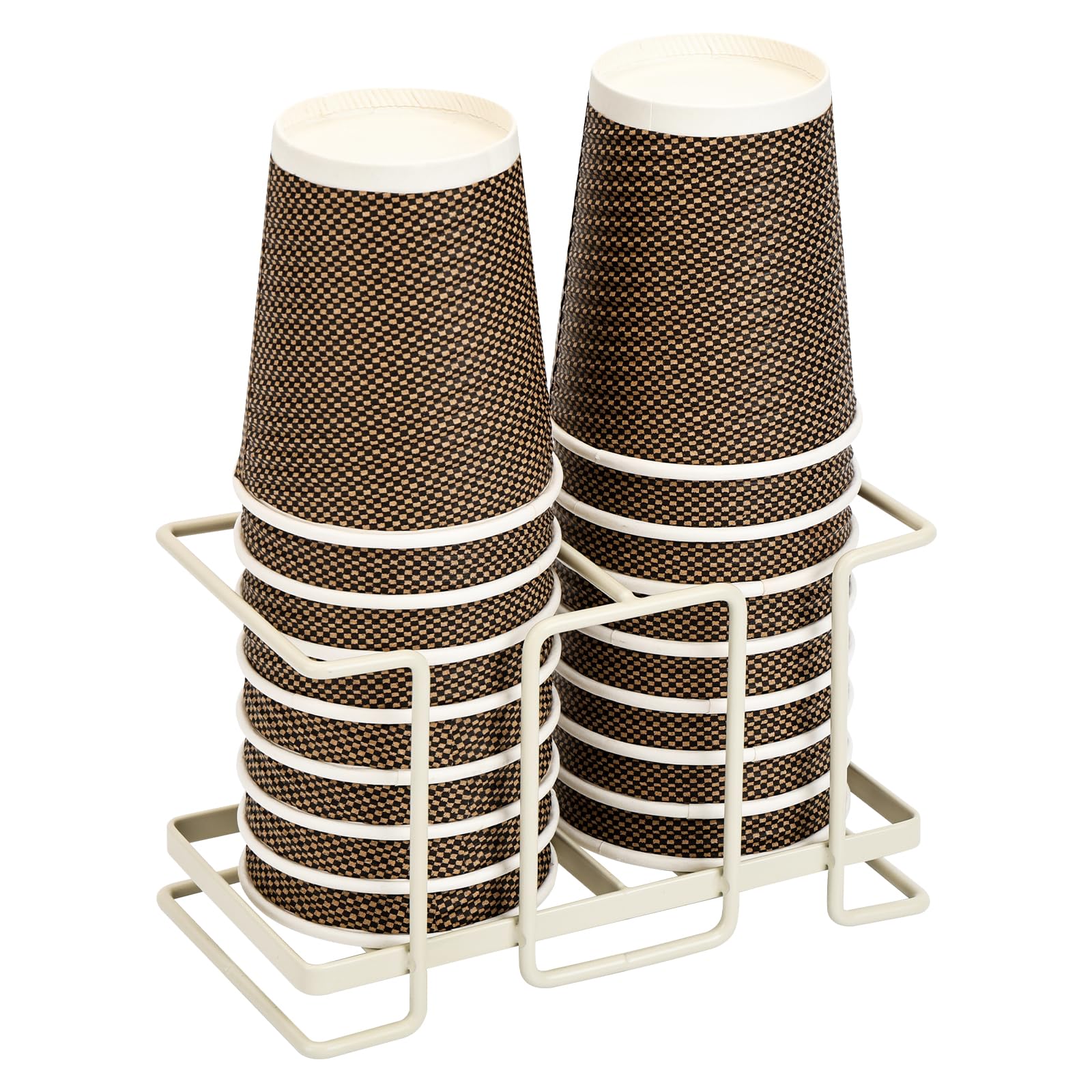 【人気】紙コップホルダー 紙コップスタンド 使い捨てカップ保管 カップディスペンサー 卓上 1列 2列 鉄製 仕切り収納 通気 衛生 多機能 省スペース 口径7.5cm以下適用 オフィス 家庭用 (ホワイト 2列) | GIGATERA