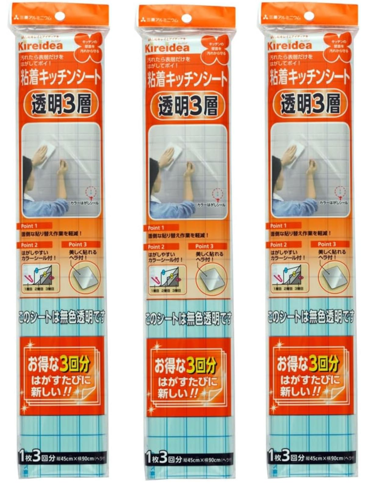エムエーパッケージング キッチン保護シート 粘着キッチンシート 透明 3層タイプ クリアー MB58411 約 45×90cm 3個セット