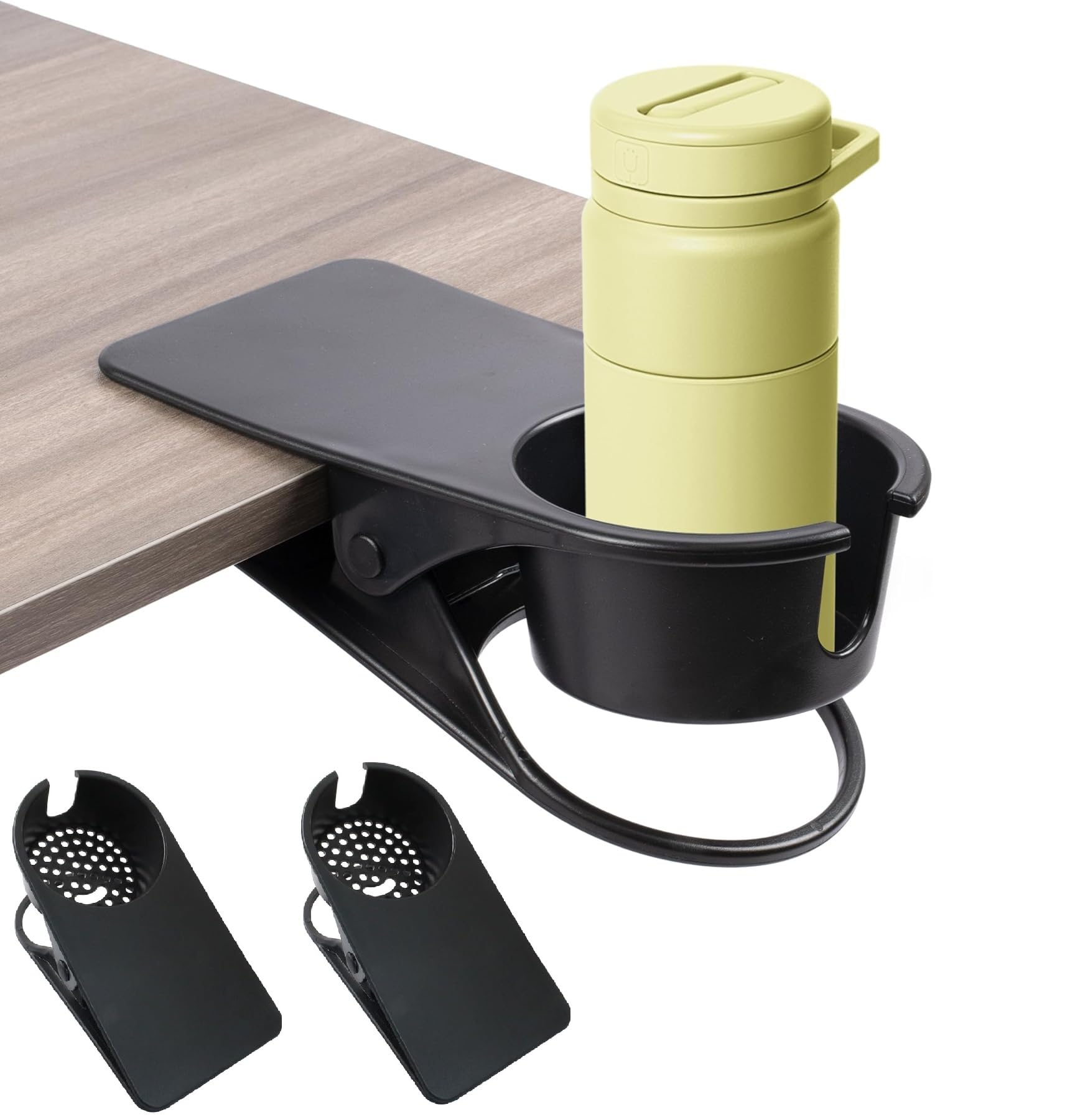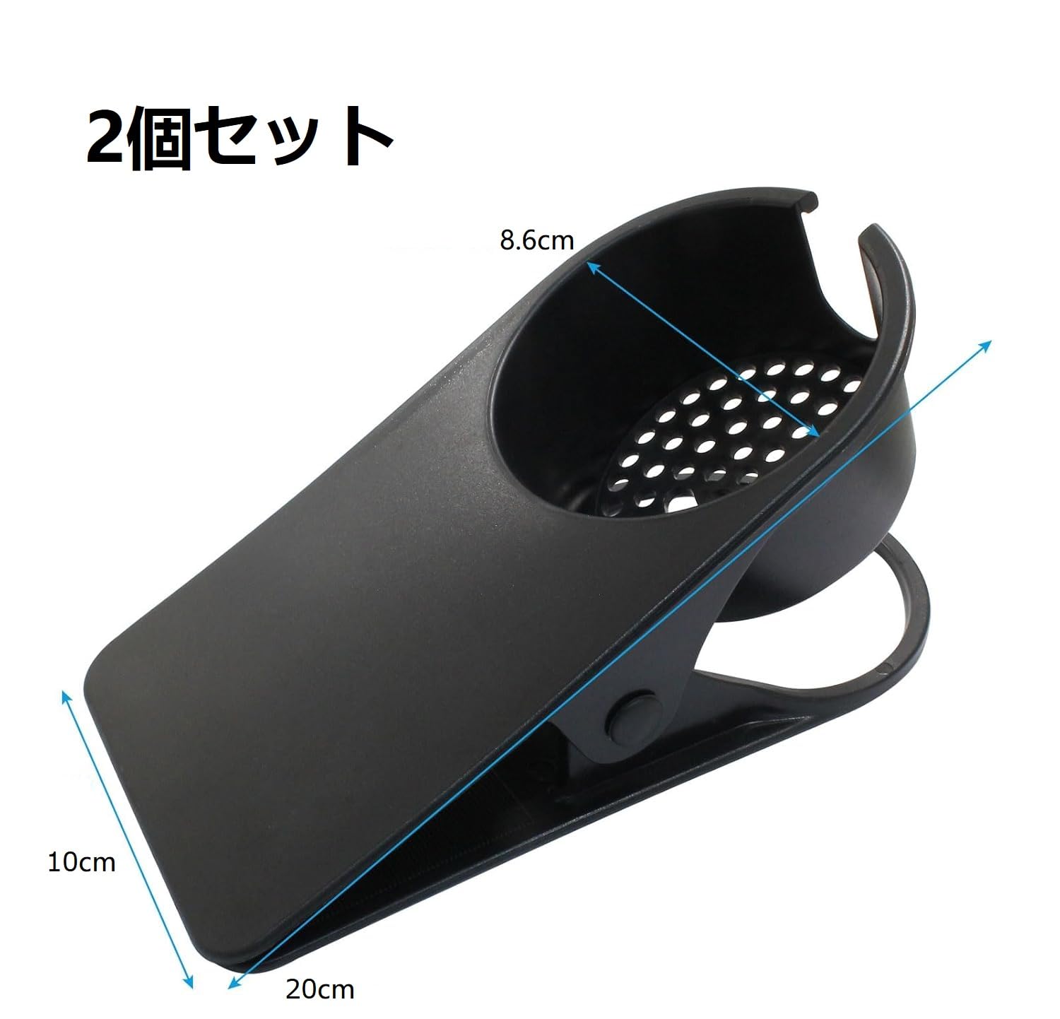 カップホルダー クリップ式 2個セット 卓上 ドリンクカップホルダー 滑り止め こぼれ防止 グラスホルダー 省ペース 取り付け簡単 ボトル グラス マグカップ 小物入れ 多機能 収納ラック 自宅 オフィス用